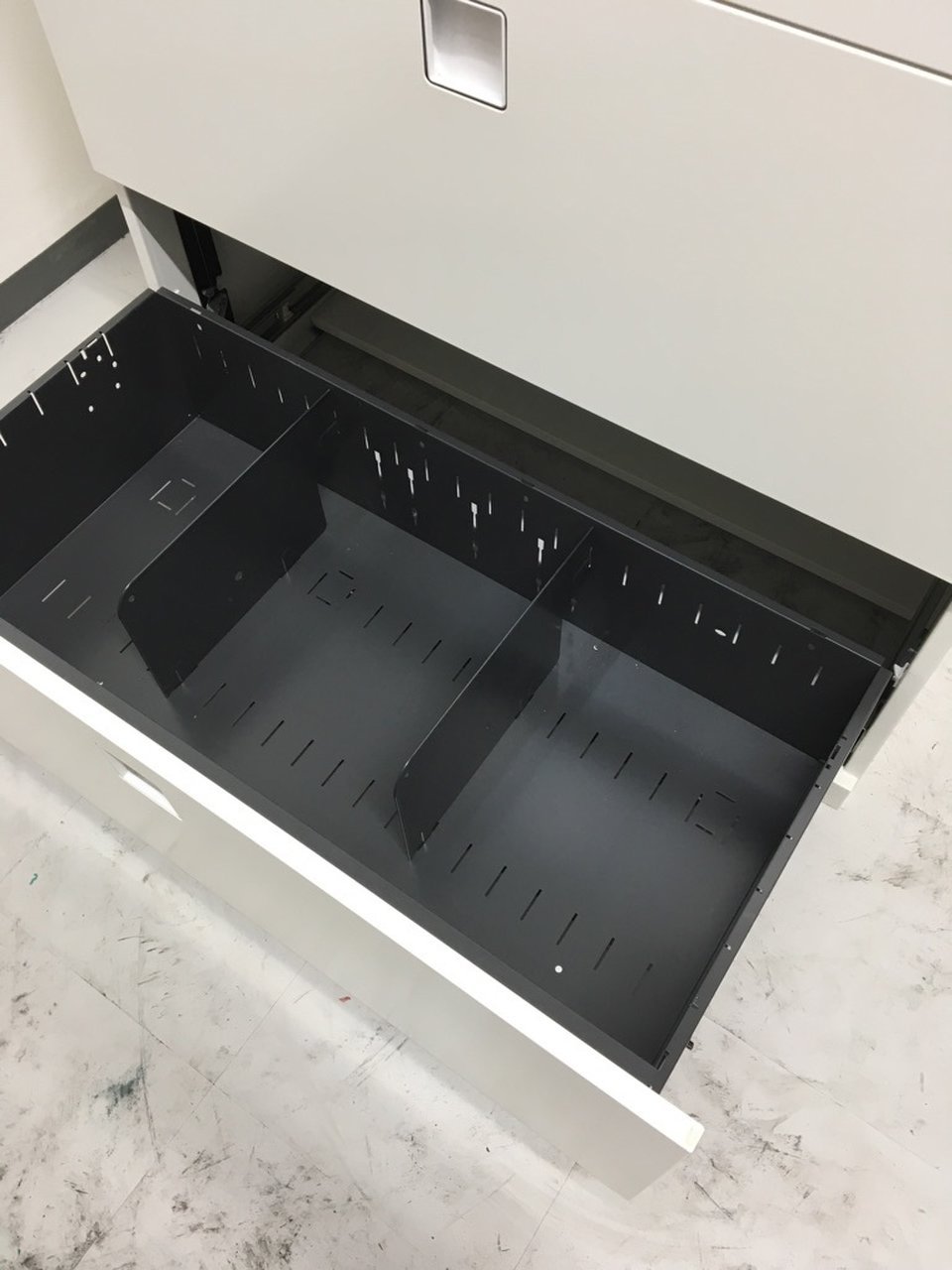 - 一部不具合ありそ引出の開閉不可、施錠不可、棚板無しといったの書庫の本来の効用を果たすための機能以外の一部が使用不可(例、扉、引出の開閉がしづらいなどがある。 )