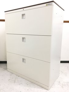 【定価約14万円!!マルチアクセスハンドルで操作性にも優れた3段ラテラル書庫の入荷です!!】■オカムラ■レクトライン