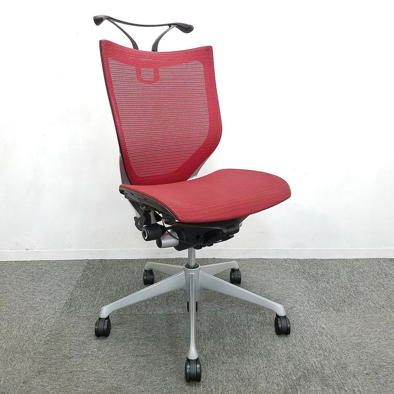 オカムラ製 バロンチェア メッシュタイプ レッド色 高級チェア コートハンガー付き コスト重視 コスパ抜群 ロット【在庫入替品】※上下昇降、リクライニング時に異音などありサーキュラーバリューCO2削減量の算出について
