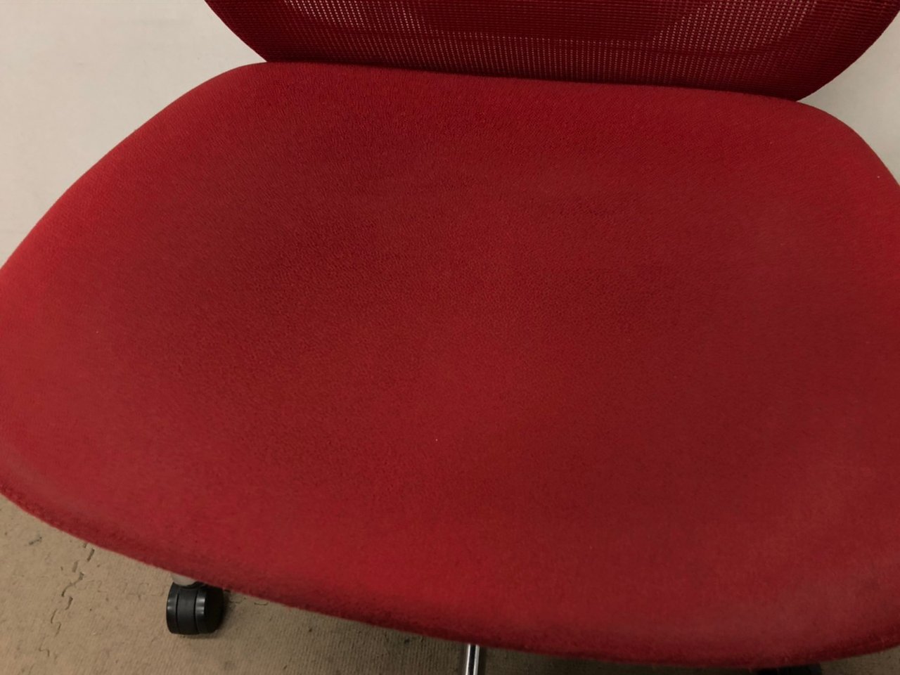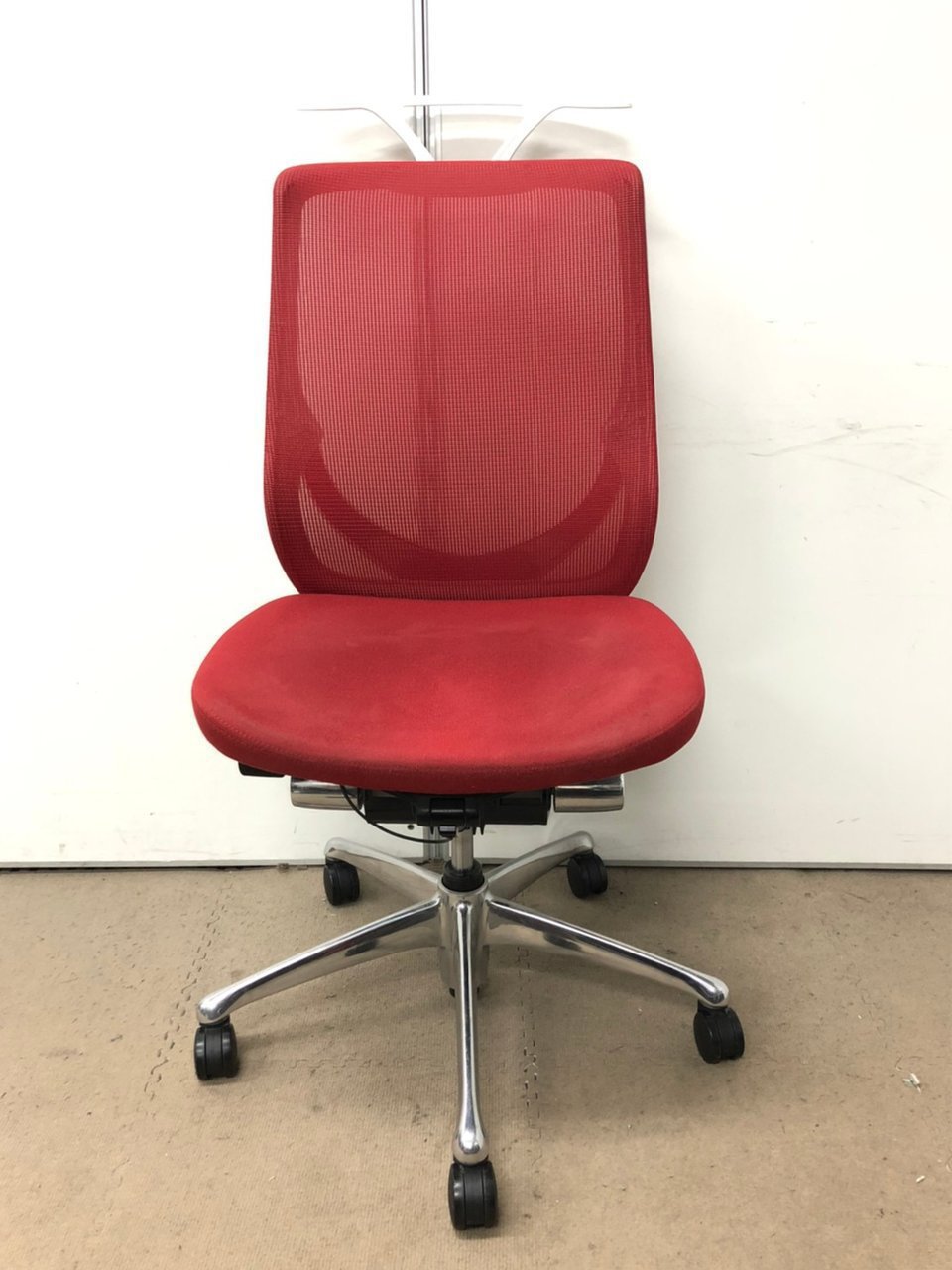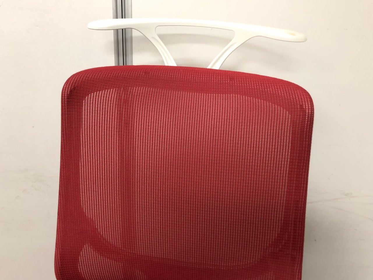 オカムラ製 ゼファーチェア 肘無しハイバックチェア コートハンガー付き 赤(レッド)色 ホワイトシェル おしゃれ レア 高級チェア ※背面に小さな破れが御座います。サーキュラーバリューCO2削減量の算出について