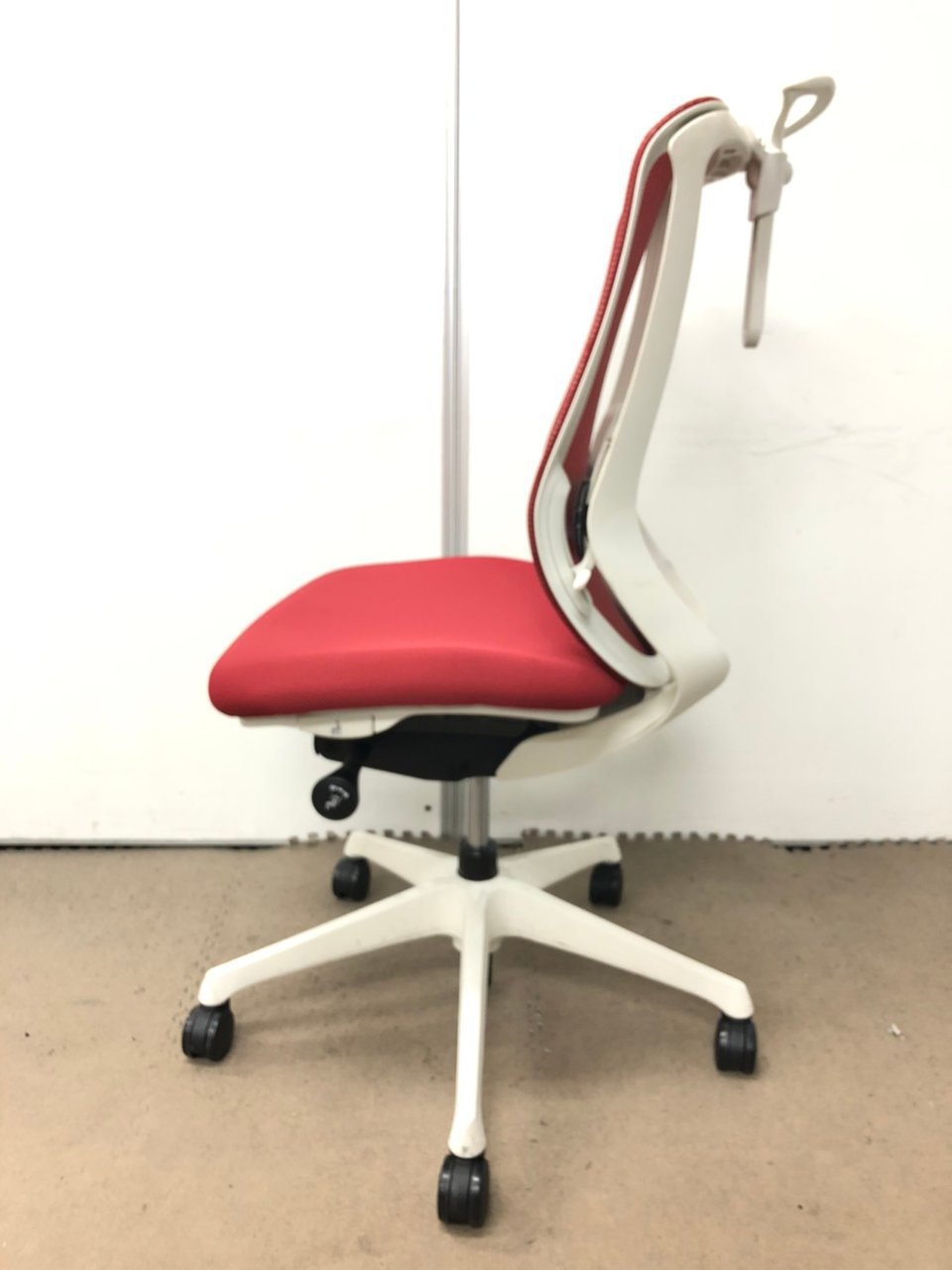 【背もたれのカーブを2段階で変えられる!】■オカムラ製 シルフィーチェア レッド ホワイトボディ アルミポリッシュ脚 ハンガー付き