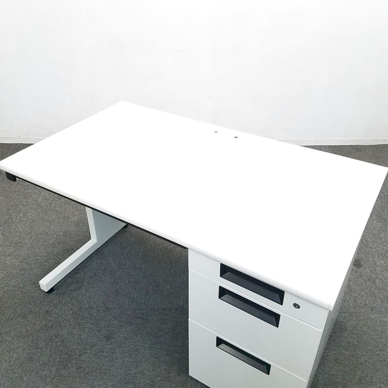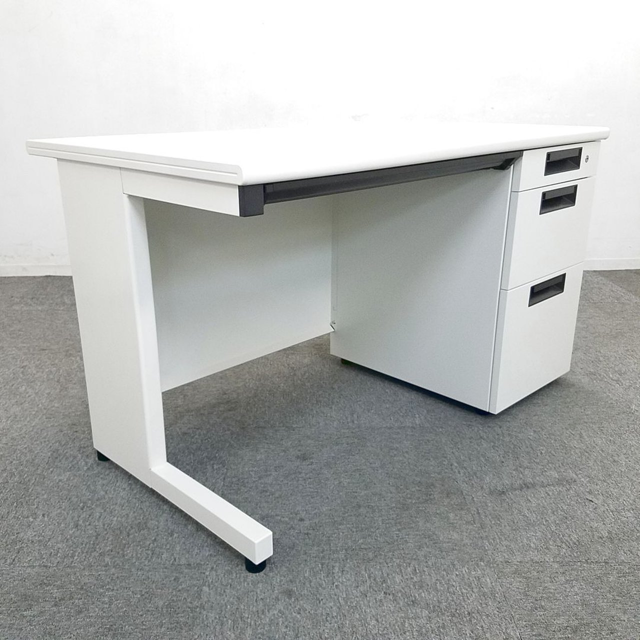 【大人気の明るいホワイトカラーの袖付き事務机!】