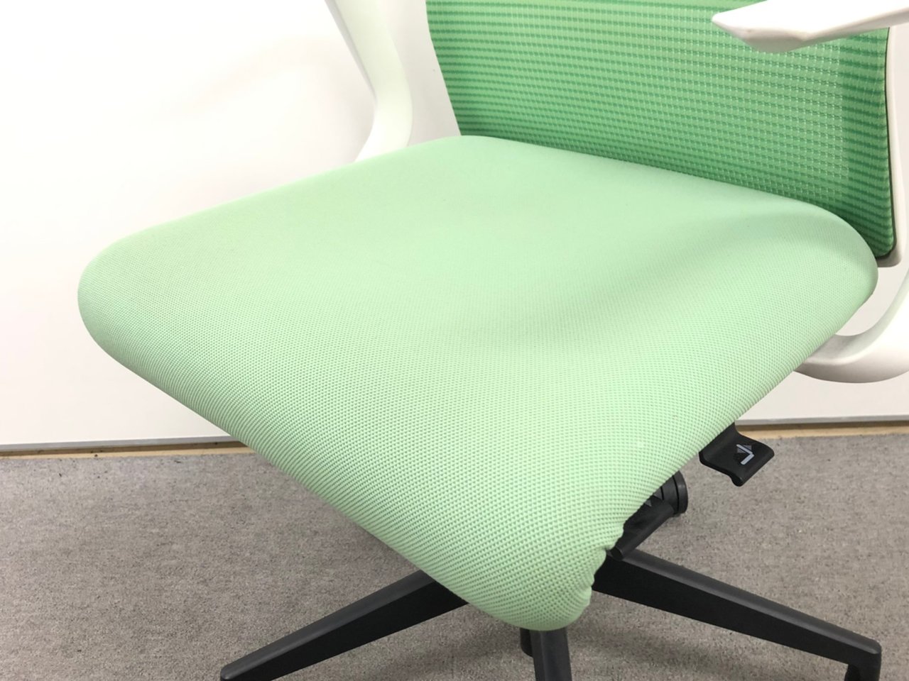 【珍しい座奥調整機構!】優しい色合いでオフィスにもご自宅にも馴染む!内田洋行/エルフィ(Elfie )/ライトグリーンチェア- 足立・葛飾店