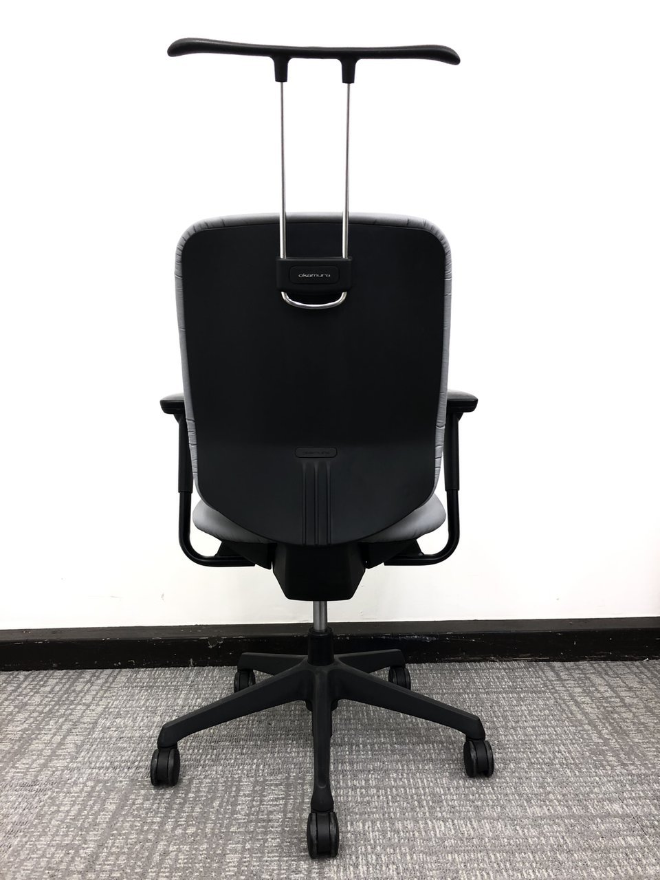 【お掃除ラクラク!アルコール除菌で清潔に!】■オカムラ製 シージーアールチェア 可動肘 ハンガー付 グレー【ビニールレザー】