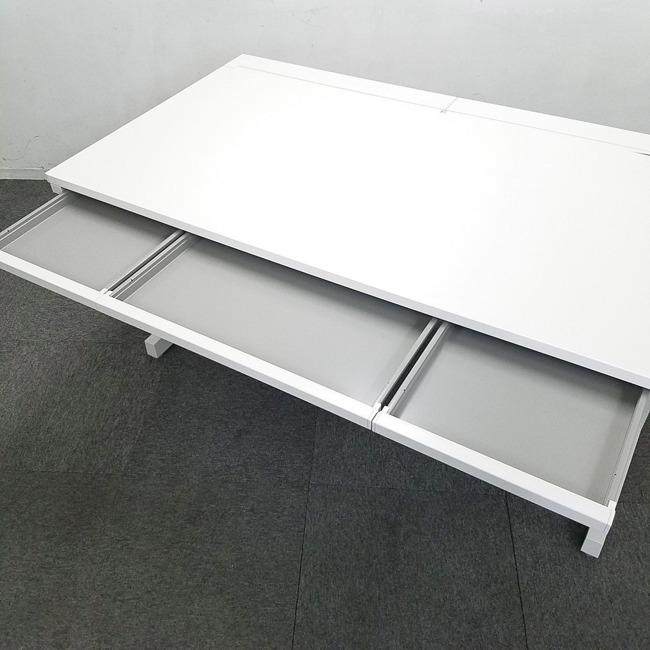 - 机の角がシャープなので、隣り合うデスクがフラットにつながります。すっきりとしたデザインです。