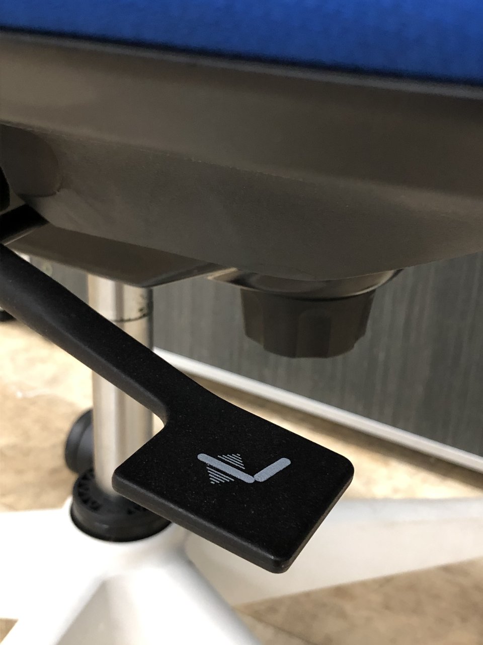 操作レバーやダイヤルは手の届きやすい座面裏に配置しています。
