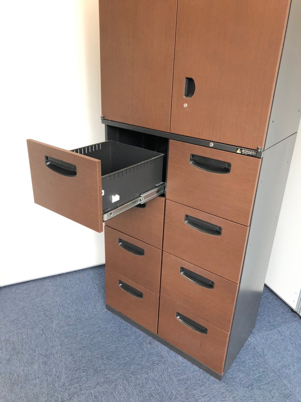 レア中のレア!木目タイプ。下置き書庫は2列4段タイプのキャビネット。書類の小分けに便利です。- 神戸・三宮店