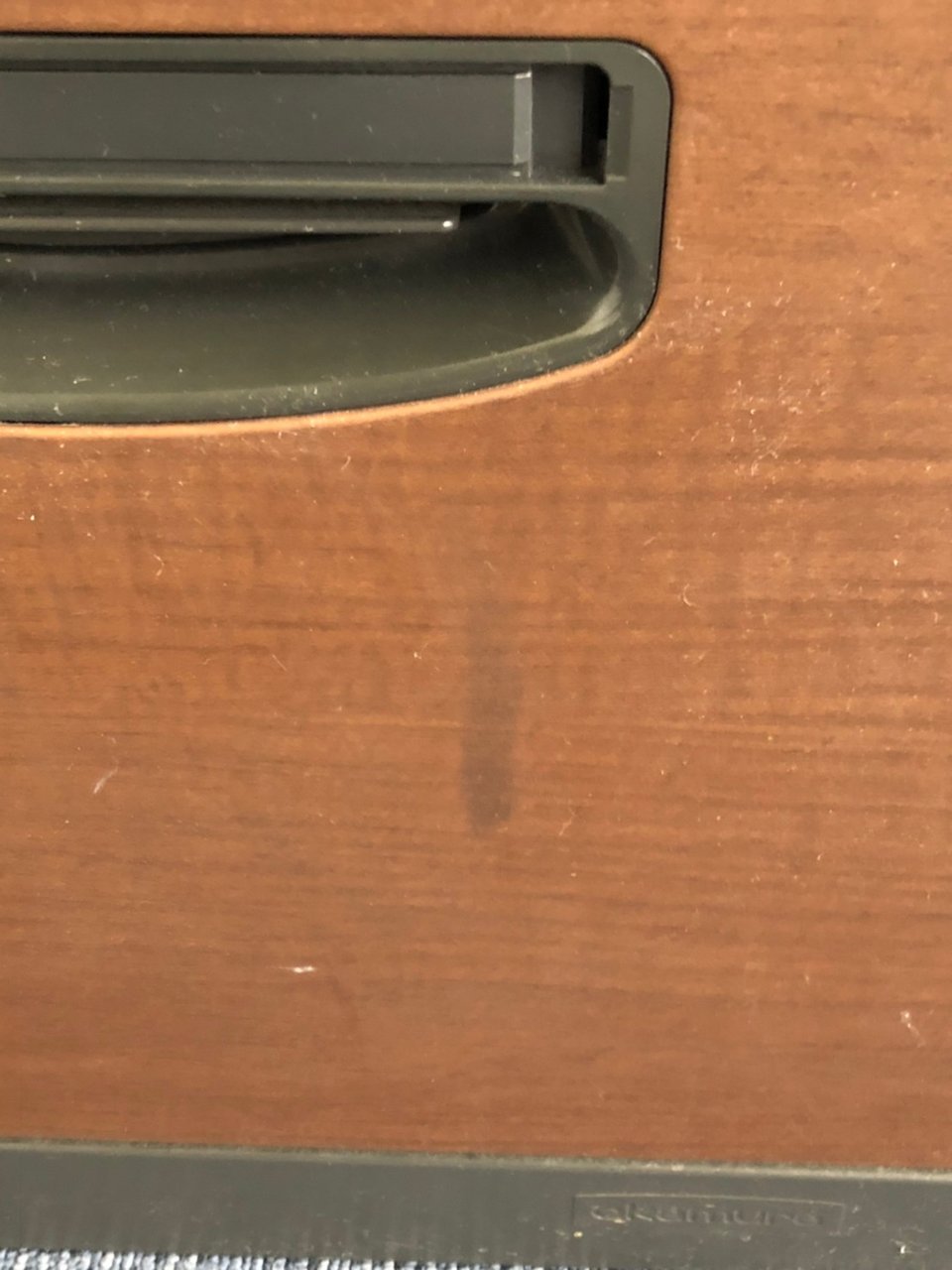 - 目立つ箇所あり傷・凹みが多数、深い傷・凹みが一部ある。(例、天板、正面、背部、サイド部分にある。)
