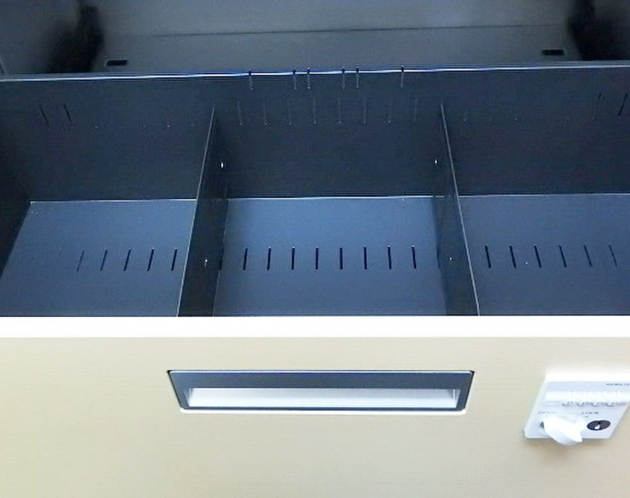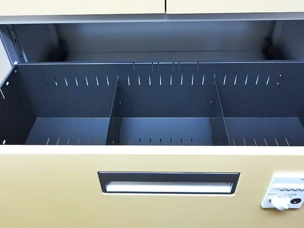- 一部不具合ありそ引出の開閉不可、施錠不可、棚板無しといったの書庫の本来の効用を果たすための機能以外の一部が使用不可(例、扉、引出の開閉がしづらいなどがある。 )