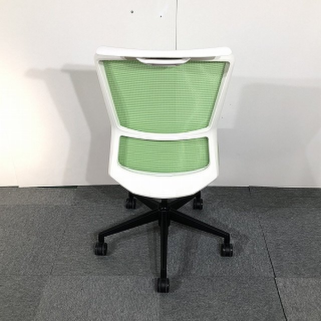 【14脚入荷】内田洋行製 エルフィチェア グリーン×ホワイトカラー 背面メッシュ 肘無し【ハンガー掛け付】【国内メーカー】
