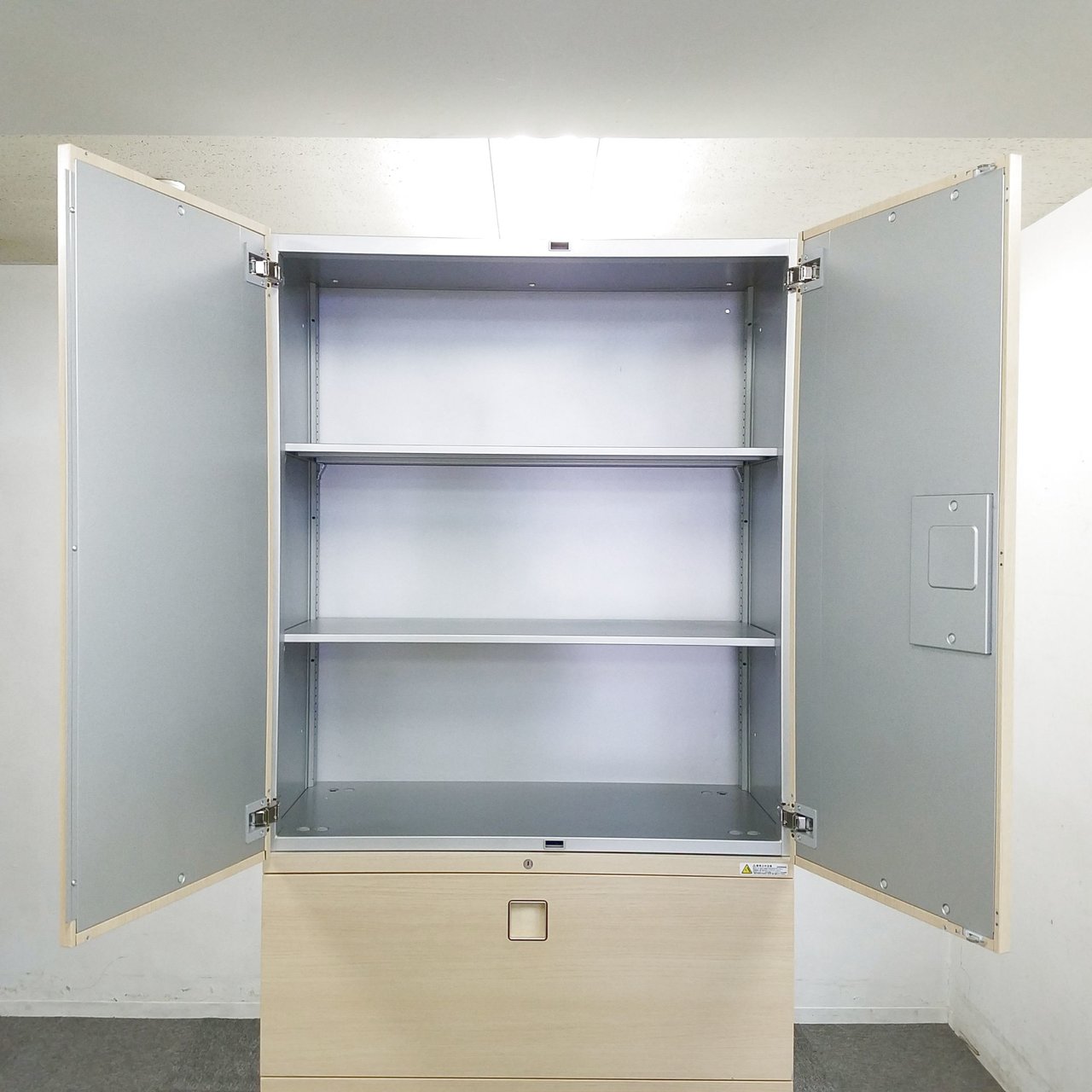 - 一部不具合ありそ引出の開閉不可、施錠不可、棚板無しといったの書庫の本来の効用を果たすための機能以外の一部が使用不可(例、扉、引出の開閉がしづらいなどがある。 )