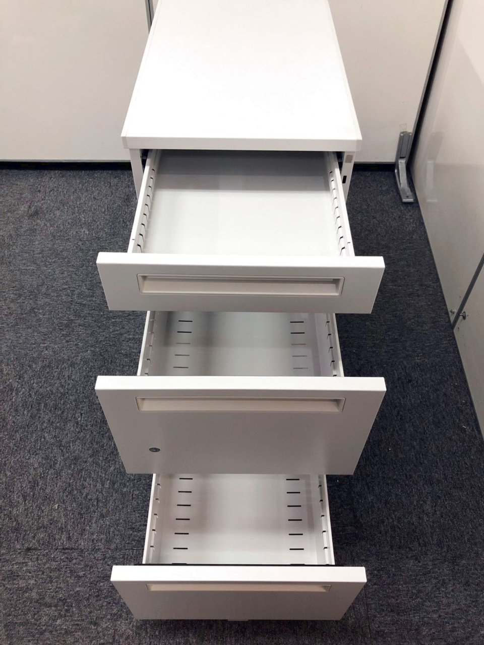 高さ720㎜の三段脇机になりますので、デスクに横並びでお使い頂けます!