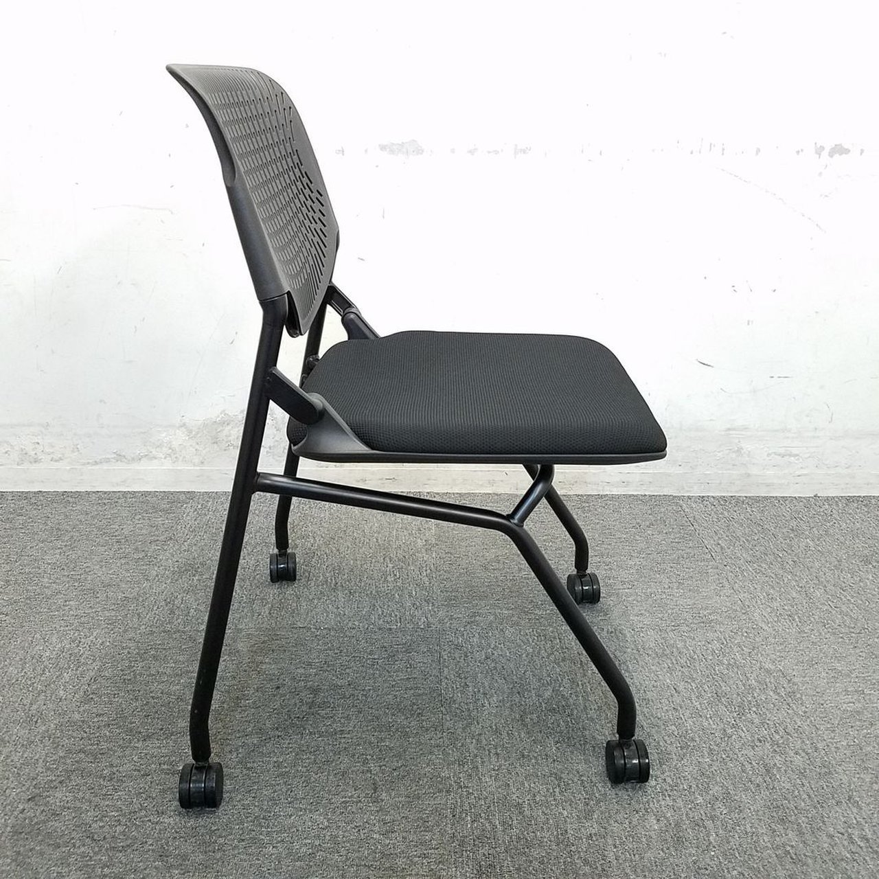 【希少なブラックフレーム】★会議スペース向けチェア★在庫豊富★コンパクトに保管★キャスター付き折り畳み可能