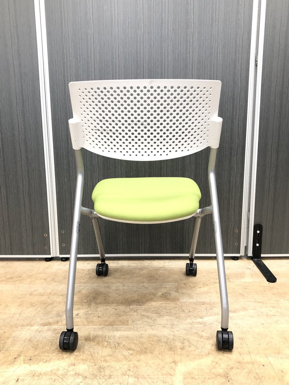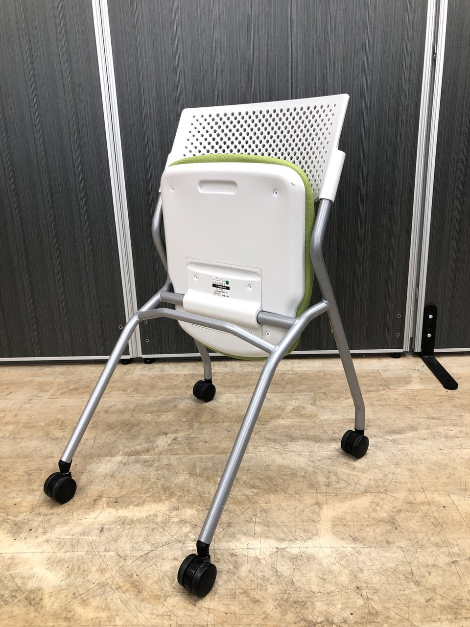【12脚入荷!】|ネスティングチェア|モスグリーン|背ホワイト|ミーティングチェア|会議室や講習室にオススメ!【関西在庫数ナンバーワン・尼崎店】