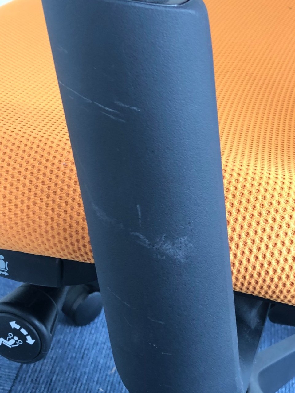 ただ、写真をご覧いただくとお分かりのように背もたれの後ろのシェルや肘の部分に擦り傷が複数個所あるため、