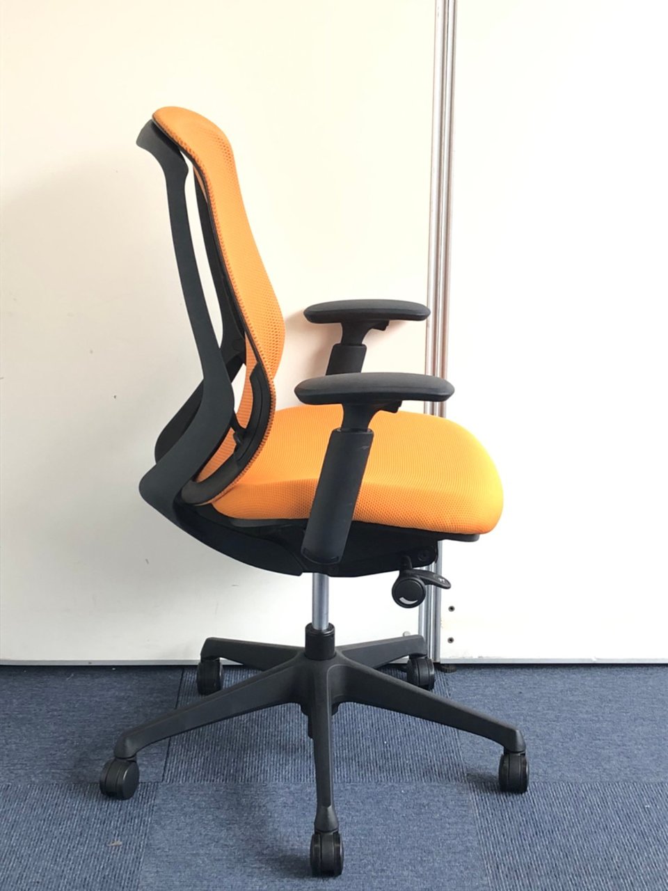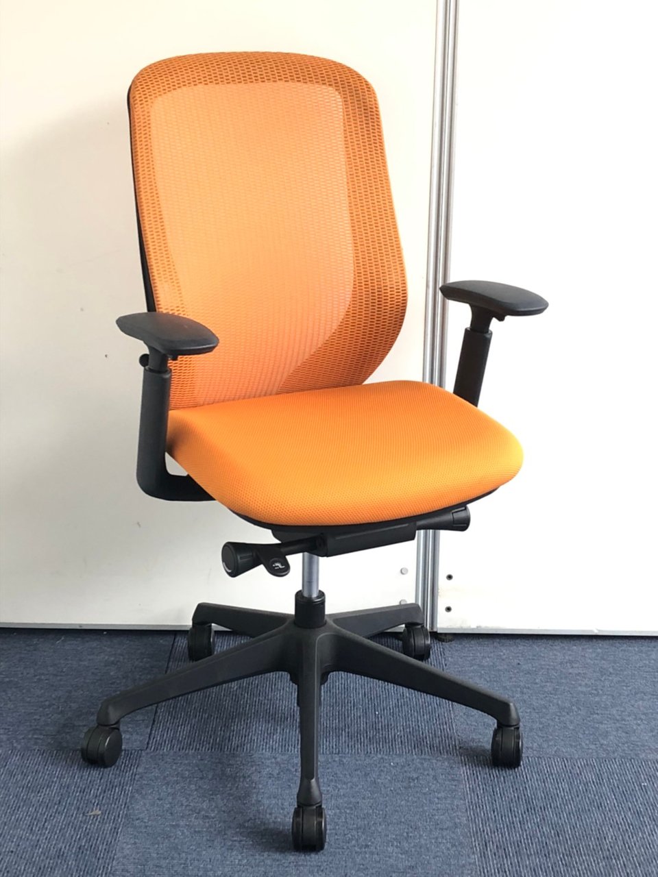 【売れ筋商品入荷!】オカムラ製 シルフィー 肘付きチェア※オレンジ【前傾姿勢可能】【可動肘】