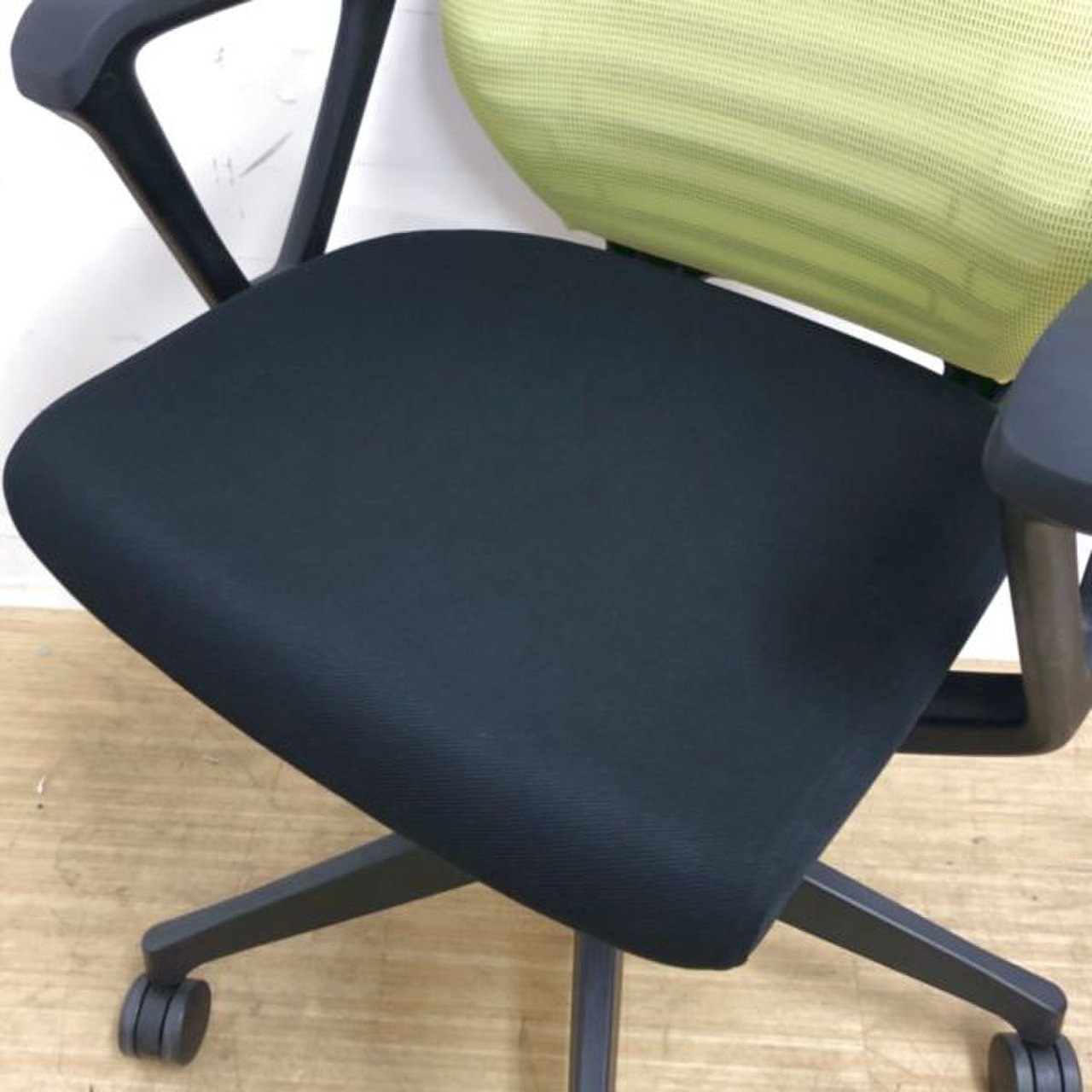 【人気ライトグリーン】イトーキ/エピオス/ライトグリーン×ブラック ループ肘(固定肘)付 ★