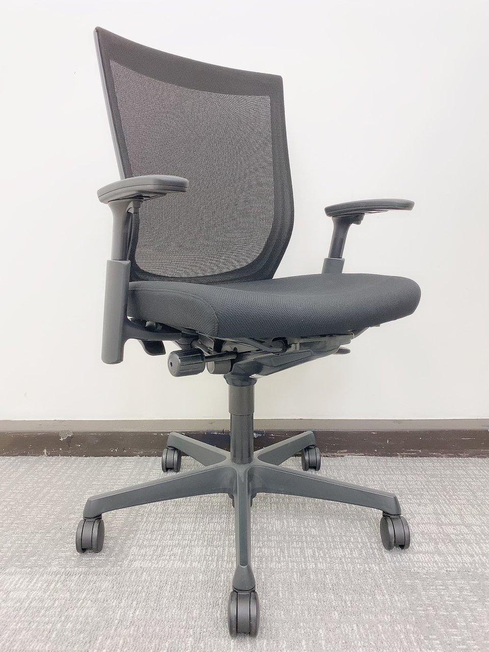 【良い椅子は健康を守る投資です!】■オカムラ製 エスクードメッシュチェア 肘付 ブラック【在宅・テレワークも捗ります!】