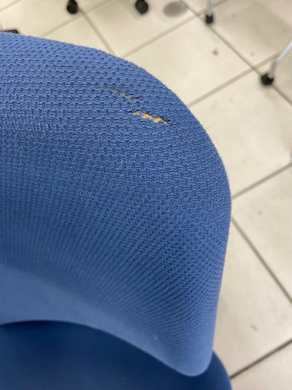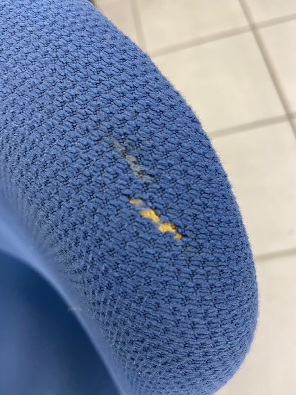 - あり黄ばみ・変色が広い範囲にうっすらある、または濃い黄ばみ・変色が一部ある。(例、座面・背もたれ、脚部等にある。)