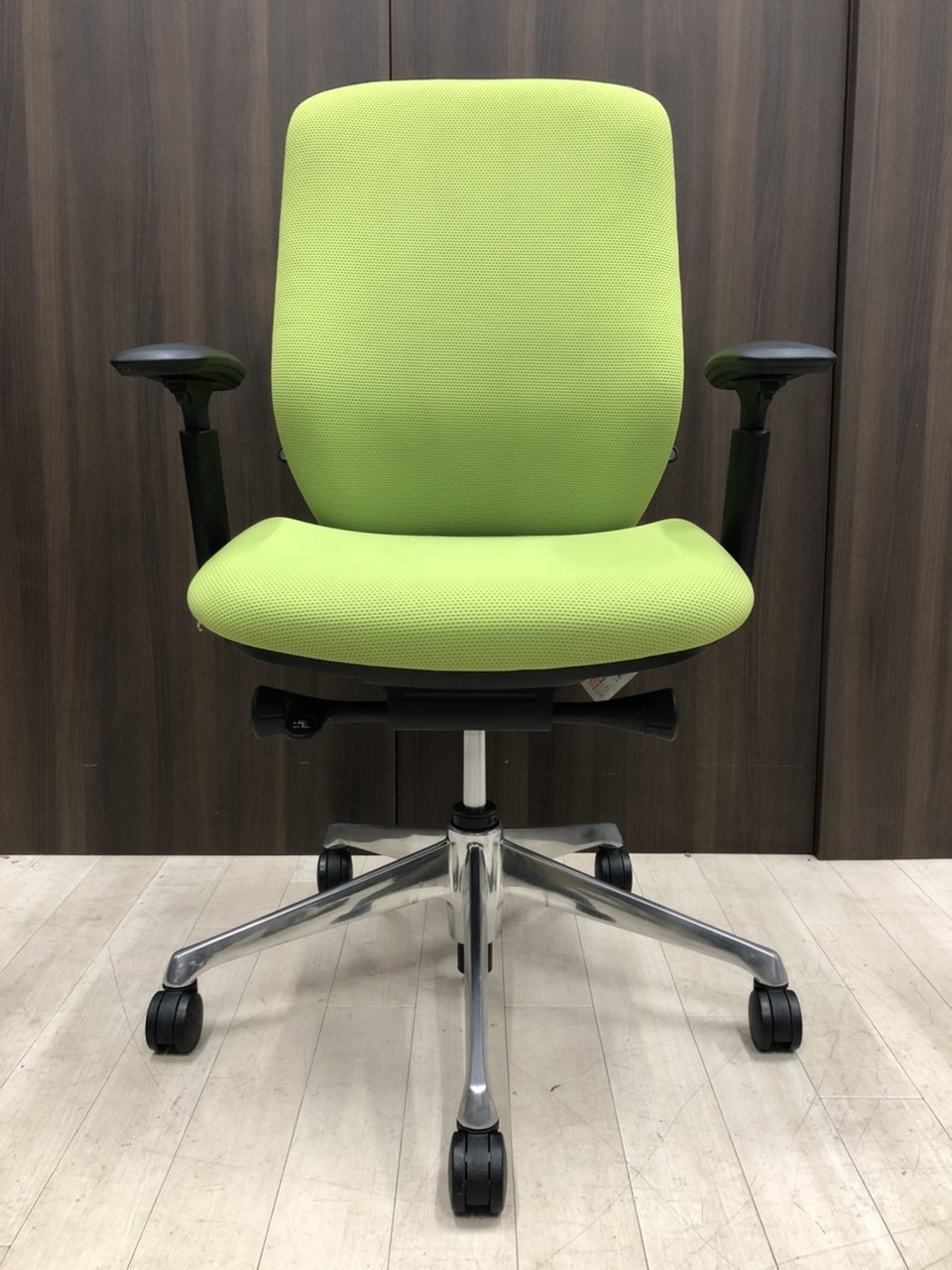 前傾姿勢!!【定価約12万円!!2015年製!!ライムグリーン×ブラックのオシャレチェア!!前傾チルト付き!!】オカムラ/シルフィー