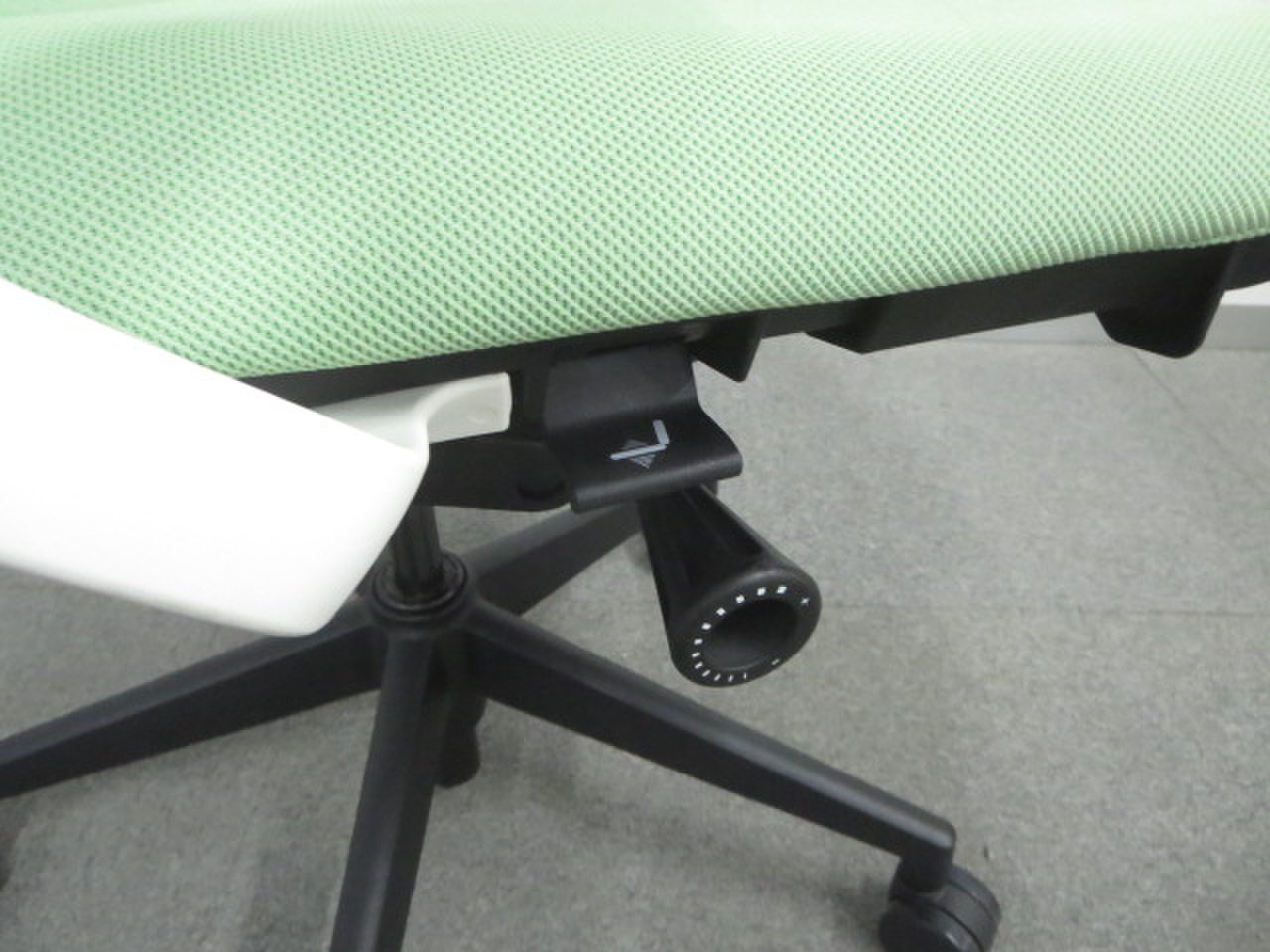 背・座の動きや調節は、座面裏の各レバーやダイヤルで行います。