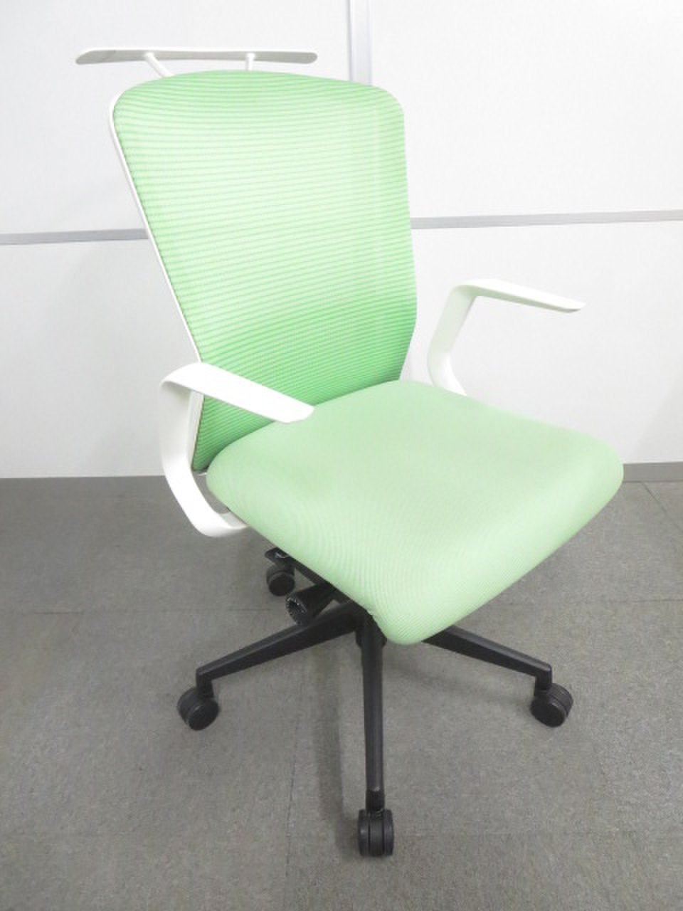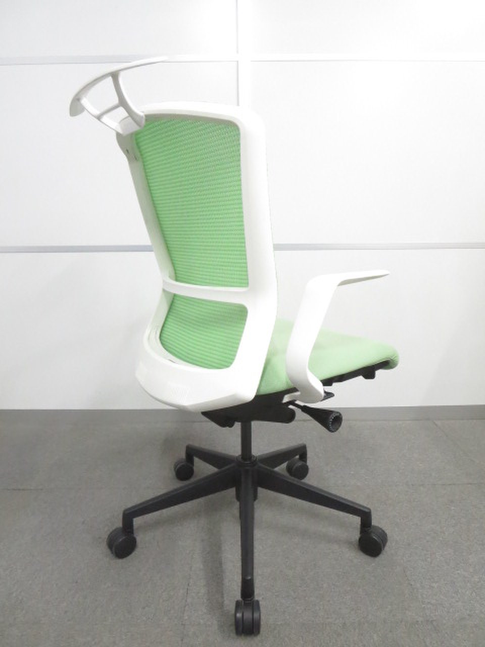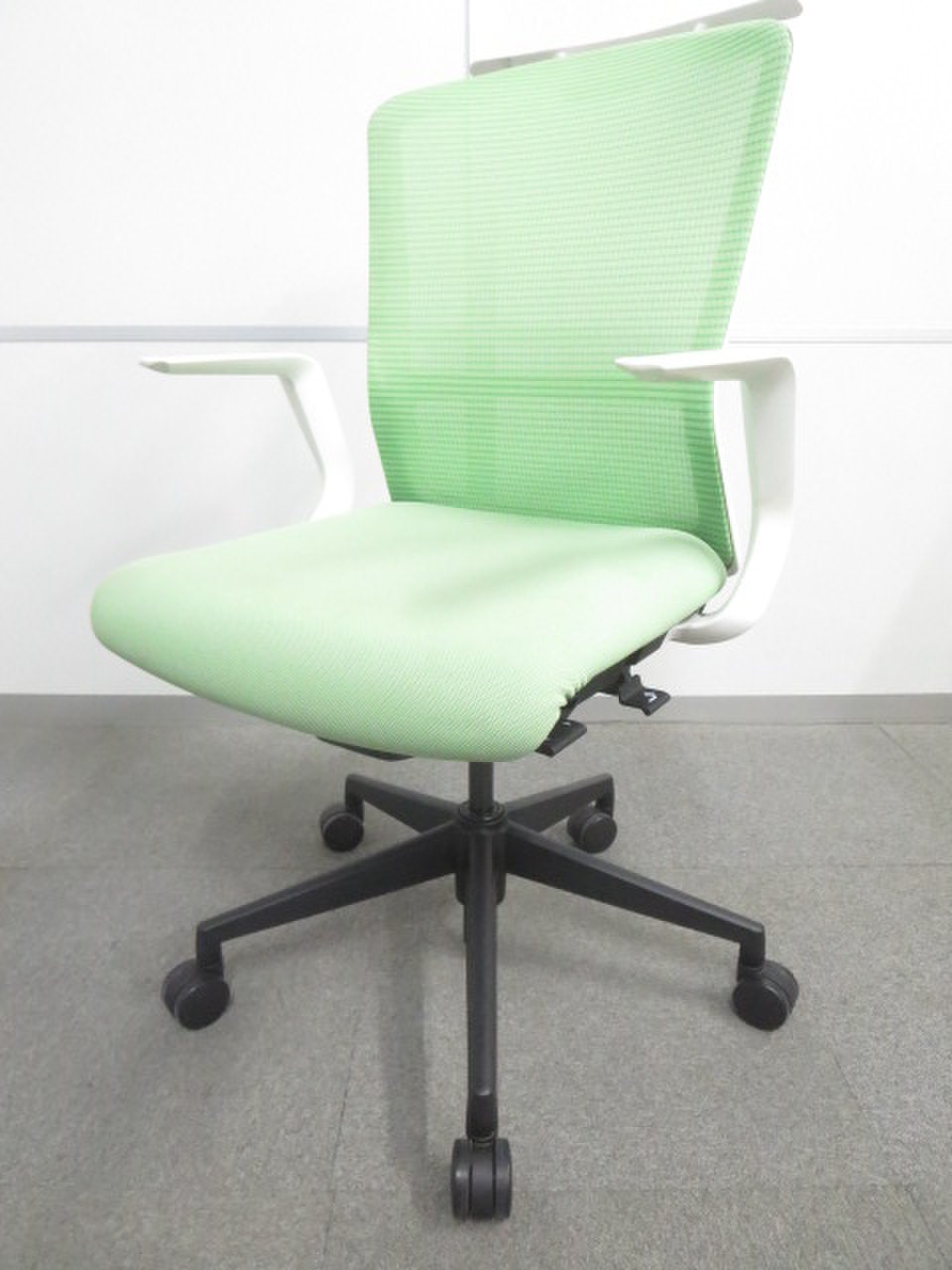 【ワンランク上の座り心地!】■ウチダ エルフィチェア ライムグリーン L型肘 ハンガー付- 川崎店