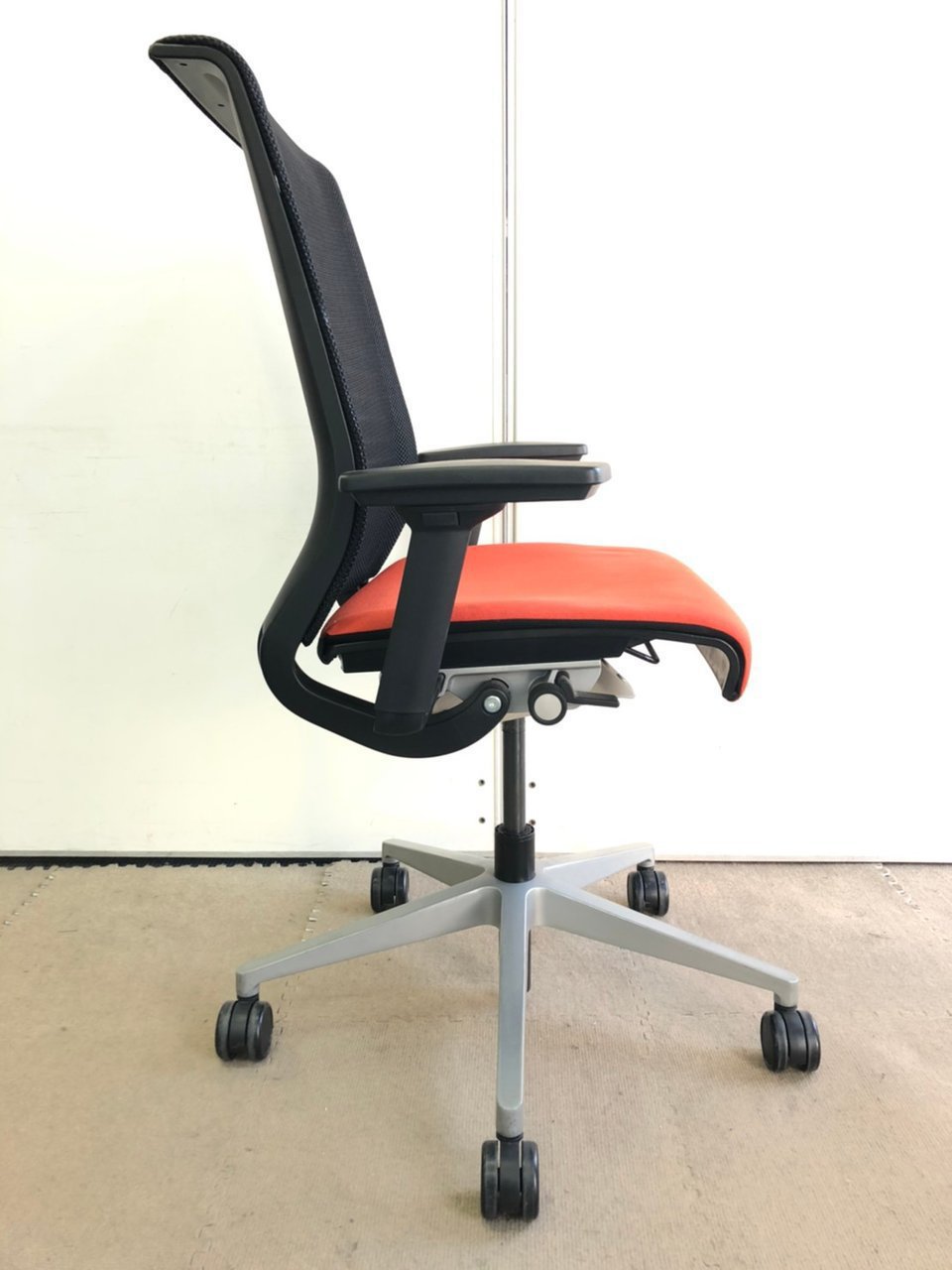 【スチールケース製】【オレンジ】【可動肘】【人気チェア】【ハイバック】【POPカラー】【状態良好】【4脚】