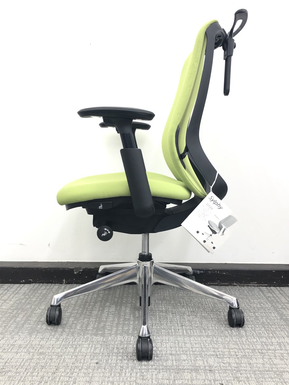 前傾姿勢!!【定価約12万円!!2015年製!!ライムグリーン×ブラックのオシャレチェア!!前傾チルト付き!!】オカムラ/シルフィー