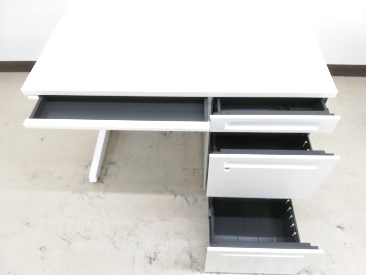 【8台入荷】【鍵あり】真っ白天板美しいホワイト片袖デスク(Advance)春日部入店◆オカムラ製