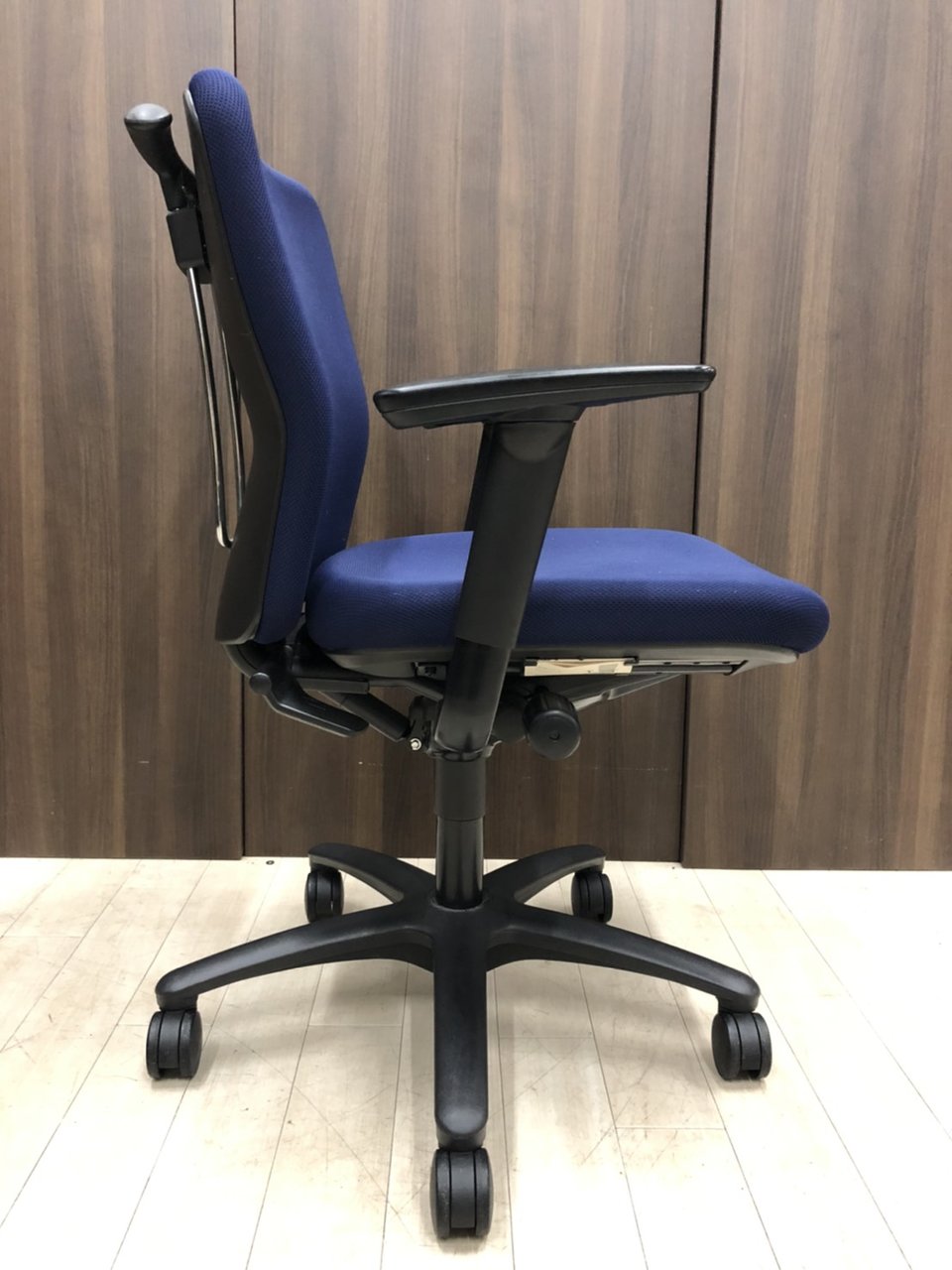 【残り1脚限り】オカムラ製 カロッツァシリーズ 肘付き ローバック ネイビーブルー!!
