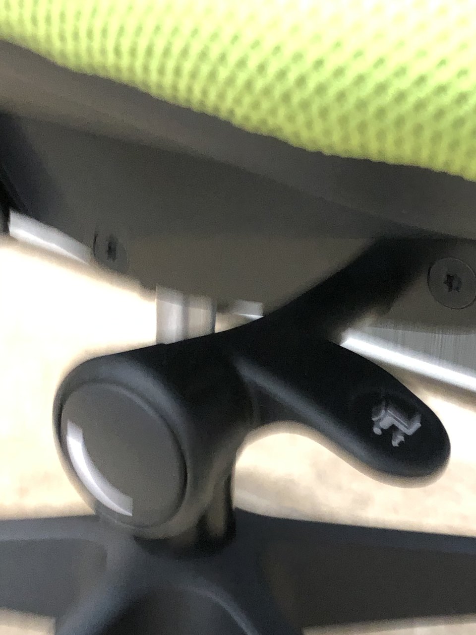 - 座面右下のダイヤル操作で、リクライニングの強弱調整が行えます。これまでのダイヤル式よりも、少ない回転数で、最弱?最強の調整が可能です。