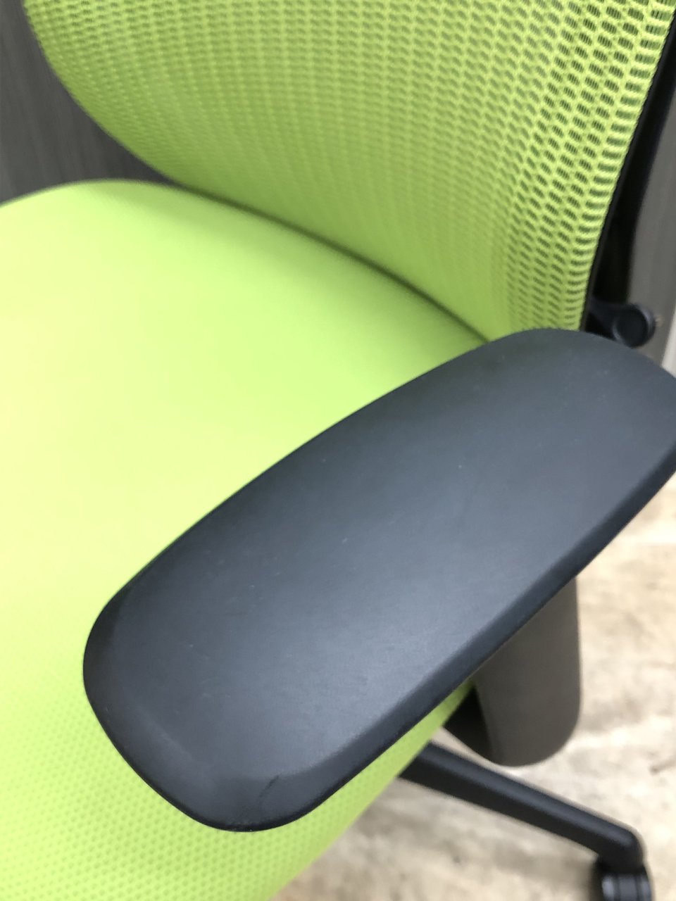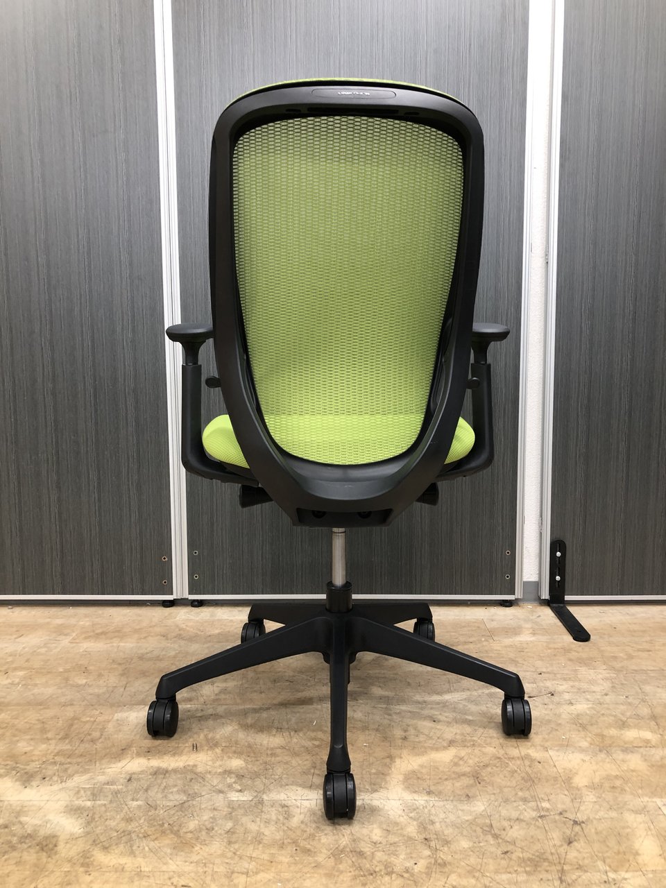 【大人気】オカムラ製 シルフィー 肘付きチェア【2018年製】【前傾チルト】【ライムグリーン】【ハイバック】