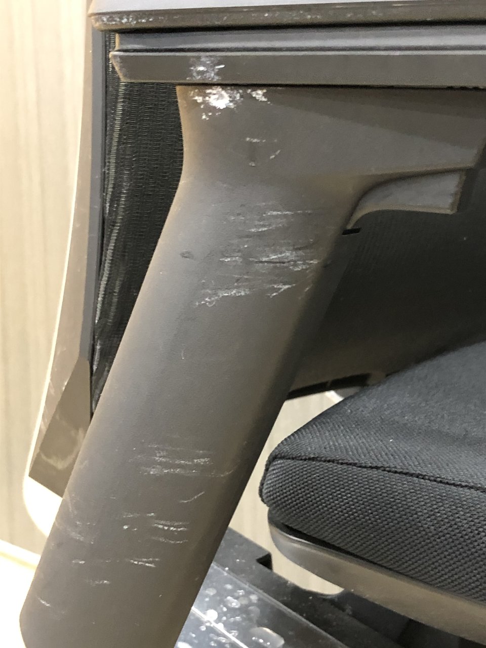 - 目立つ箇所あり傷・破れ・ほつれ・へたり・しわが多数または深い傷・破れ・ほつれ・へたり・しわが一部ある。※座面・背もたれ、シェル、脚部等にある。
