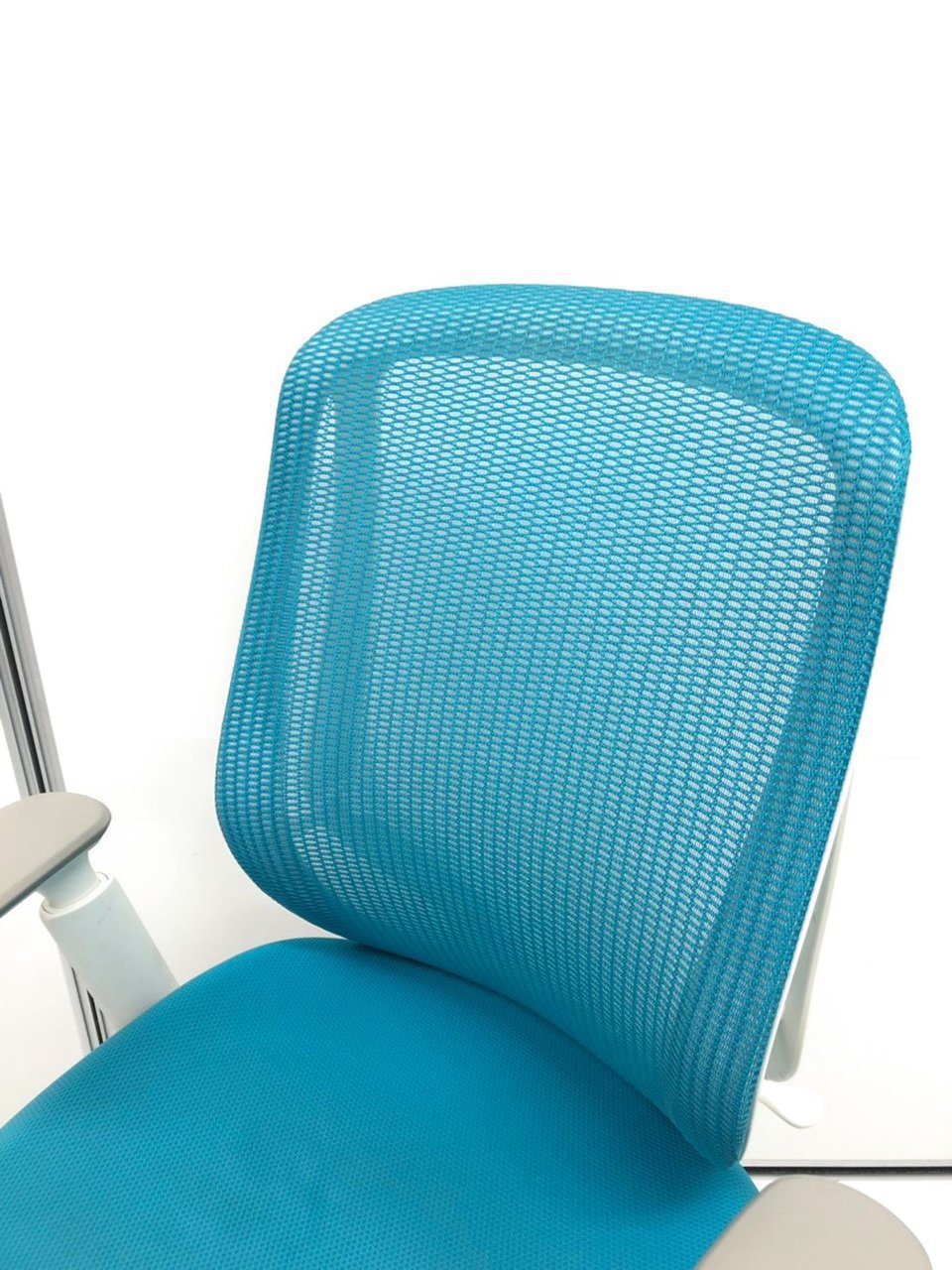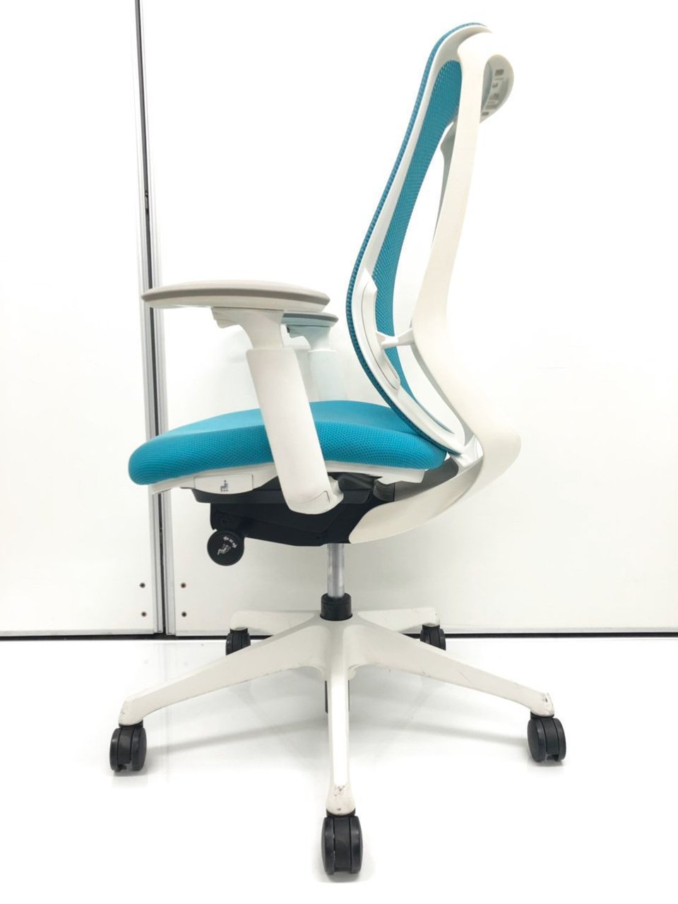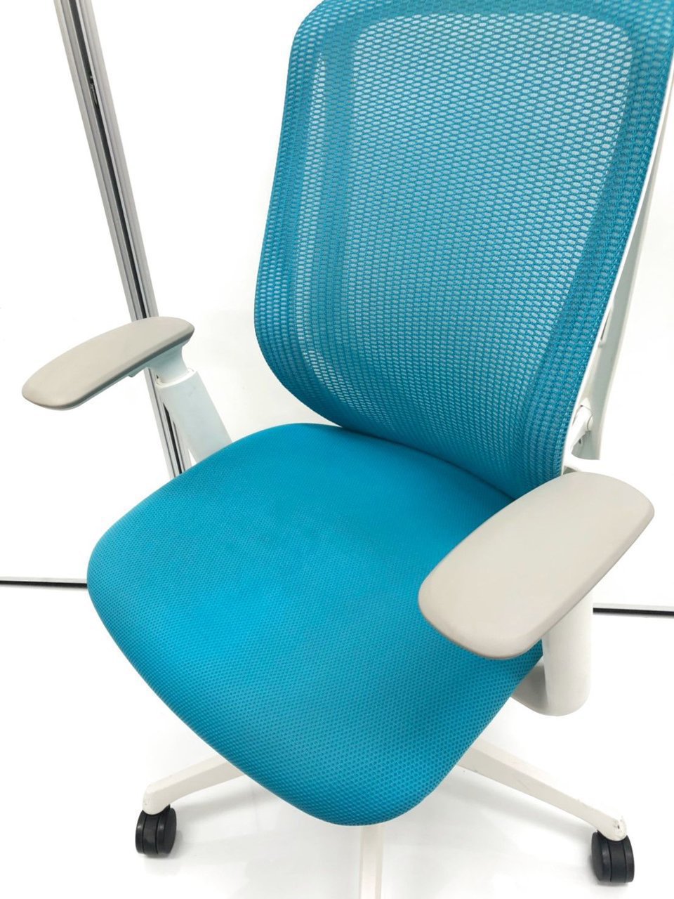 【ターコイズブルー】【ホワイトフレーム】【人気チェア】【23脚入荷】【シルフィー】【可動肘】【前傾チルト】【ハイバック】【2019年製】【使用2年未満】
