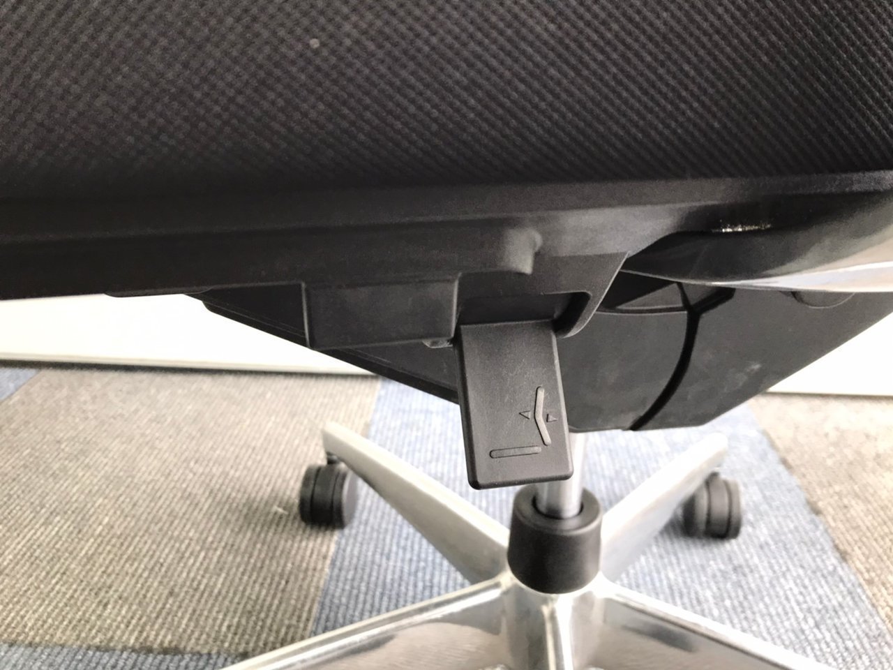 ロッキングは、任意の位置でロックすることが可能で、強さの調節は座面右下のグリップで座った状態で行えます。