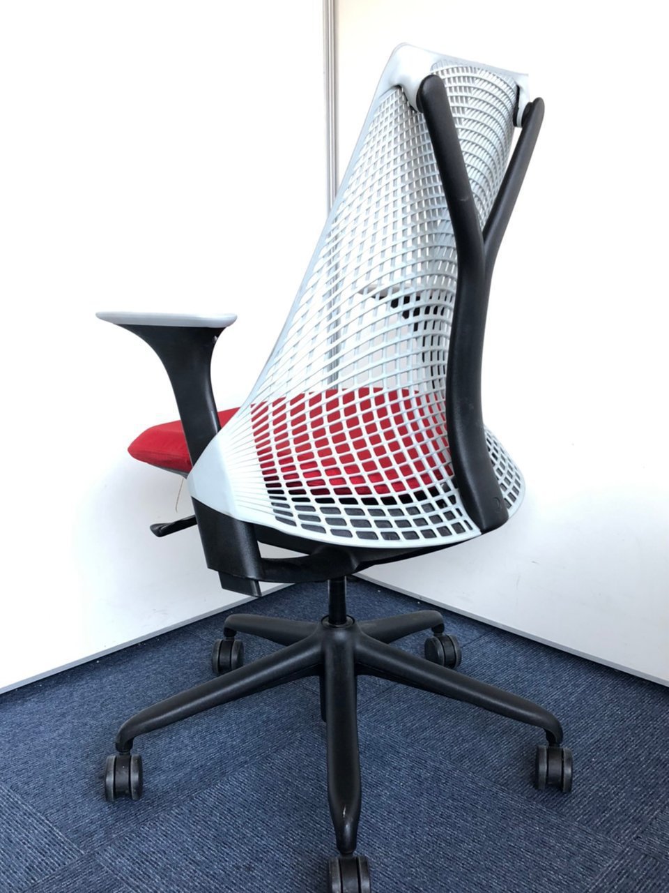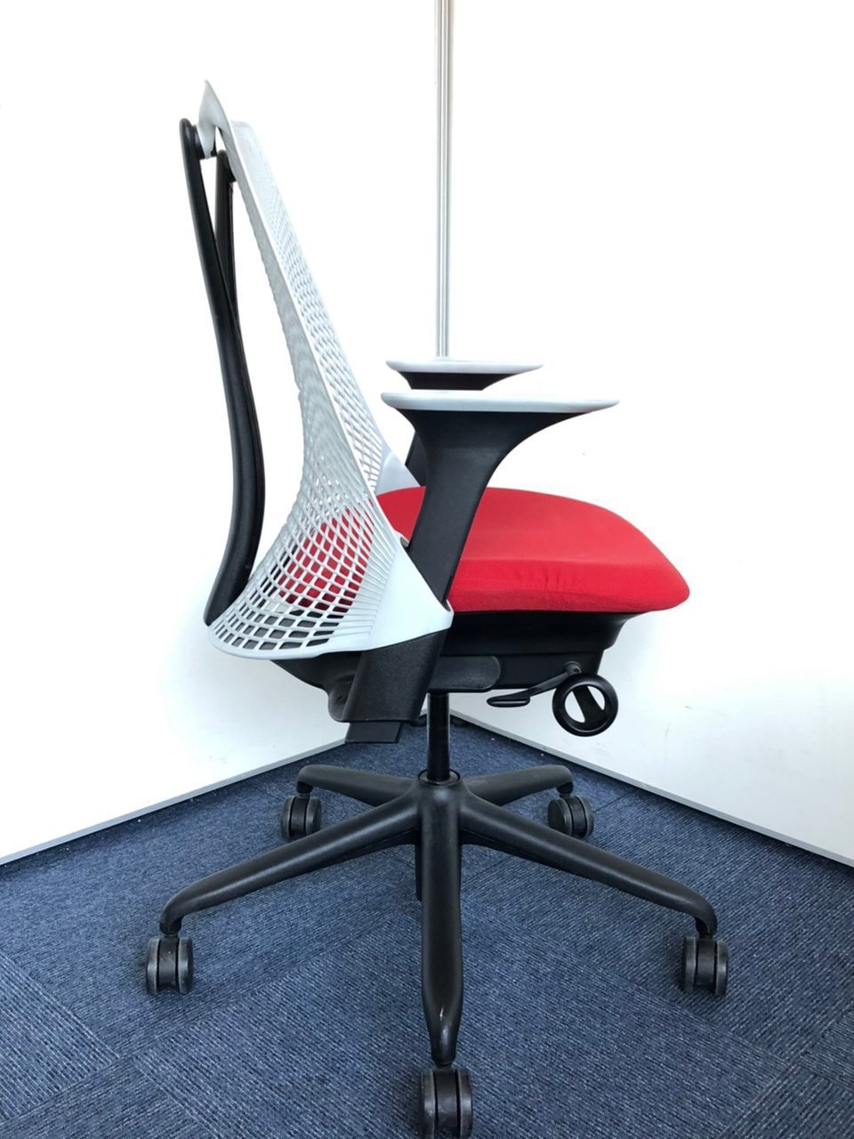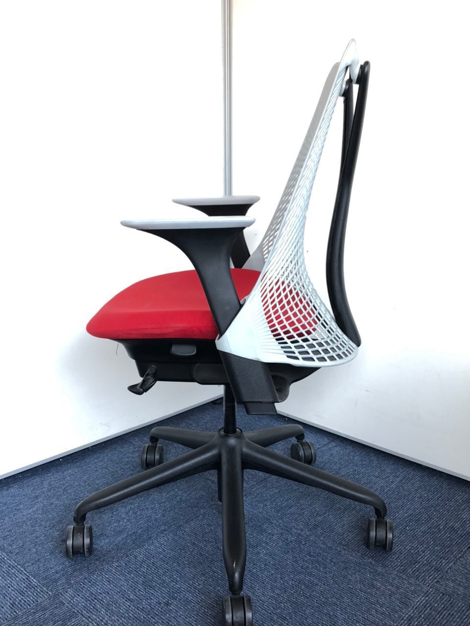 ハーマンミラー製 セイルチェア グレー×レッド色のツートーン 可動肘 ロット おすすめ 高級 レア 美しい デザイン性〇