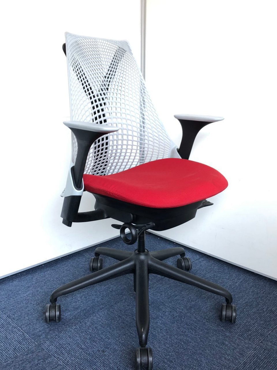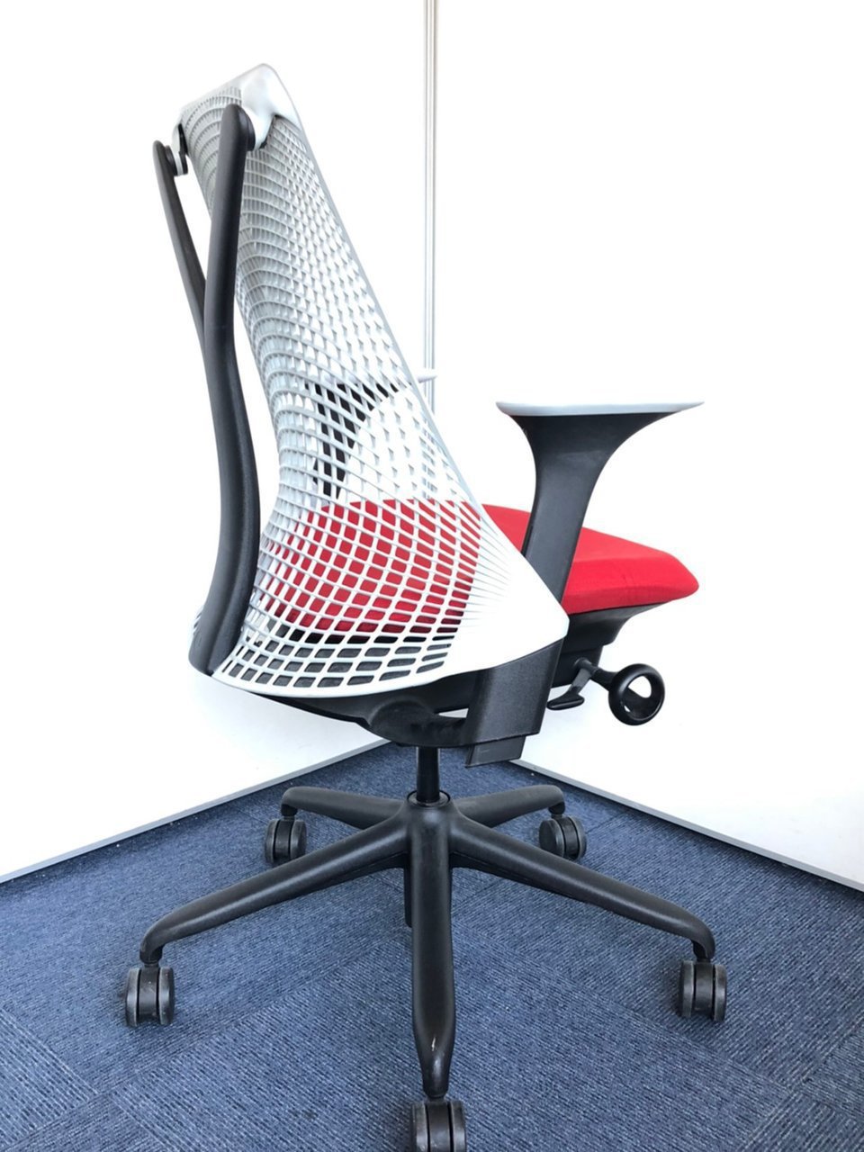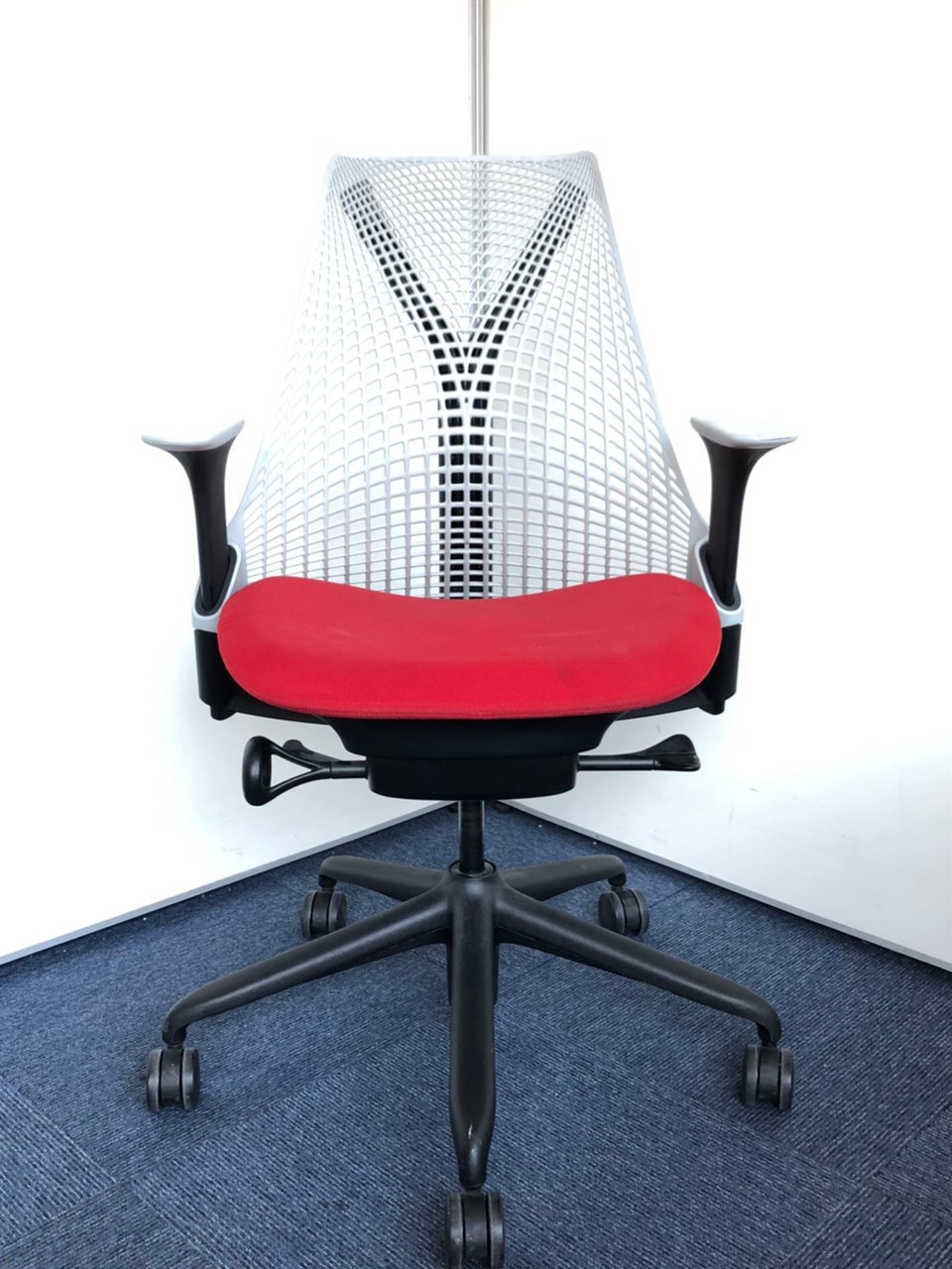 ハーマンミラー製 セイルチェア グレー×レッド色のツートーン 可動肘 ロット おすすめ 高級 レア 美しい デザイン性〇