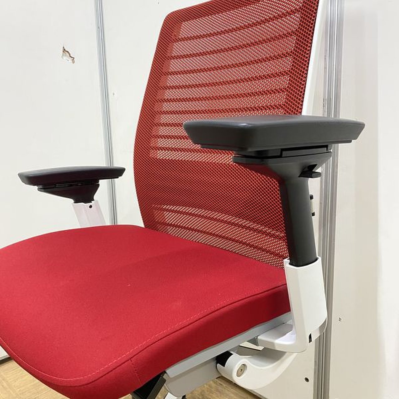 【現行タイプ】スチールケース/シンク※新型/レッド/可動肘/ランバー付き※腰痛防止