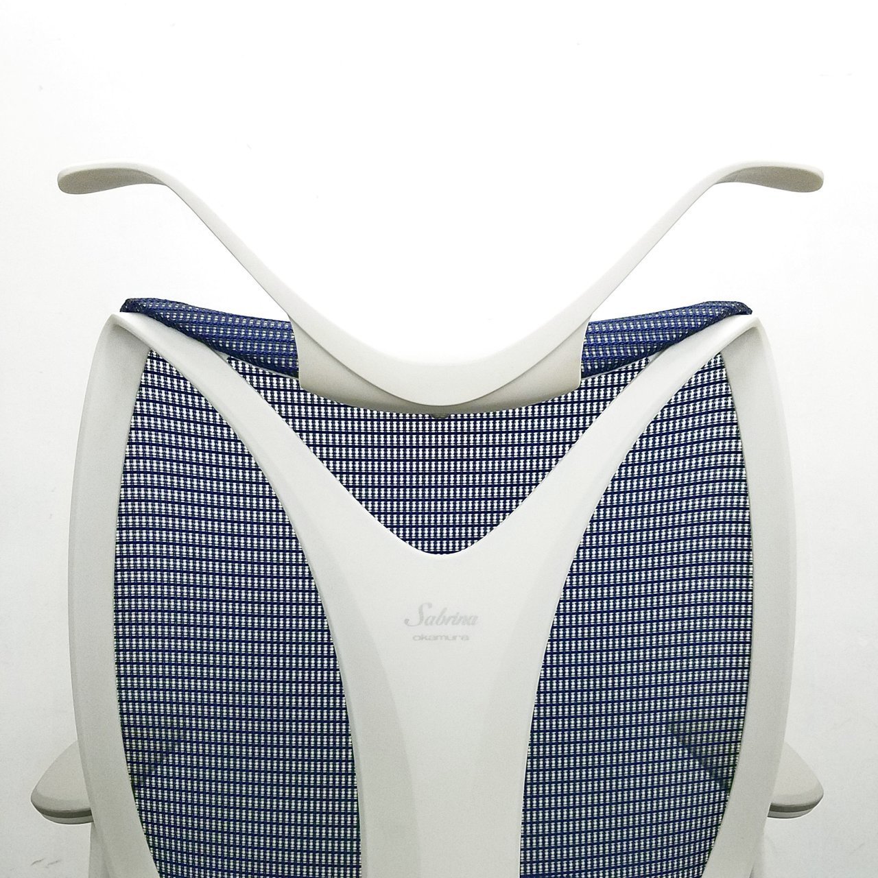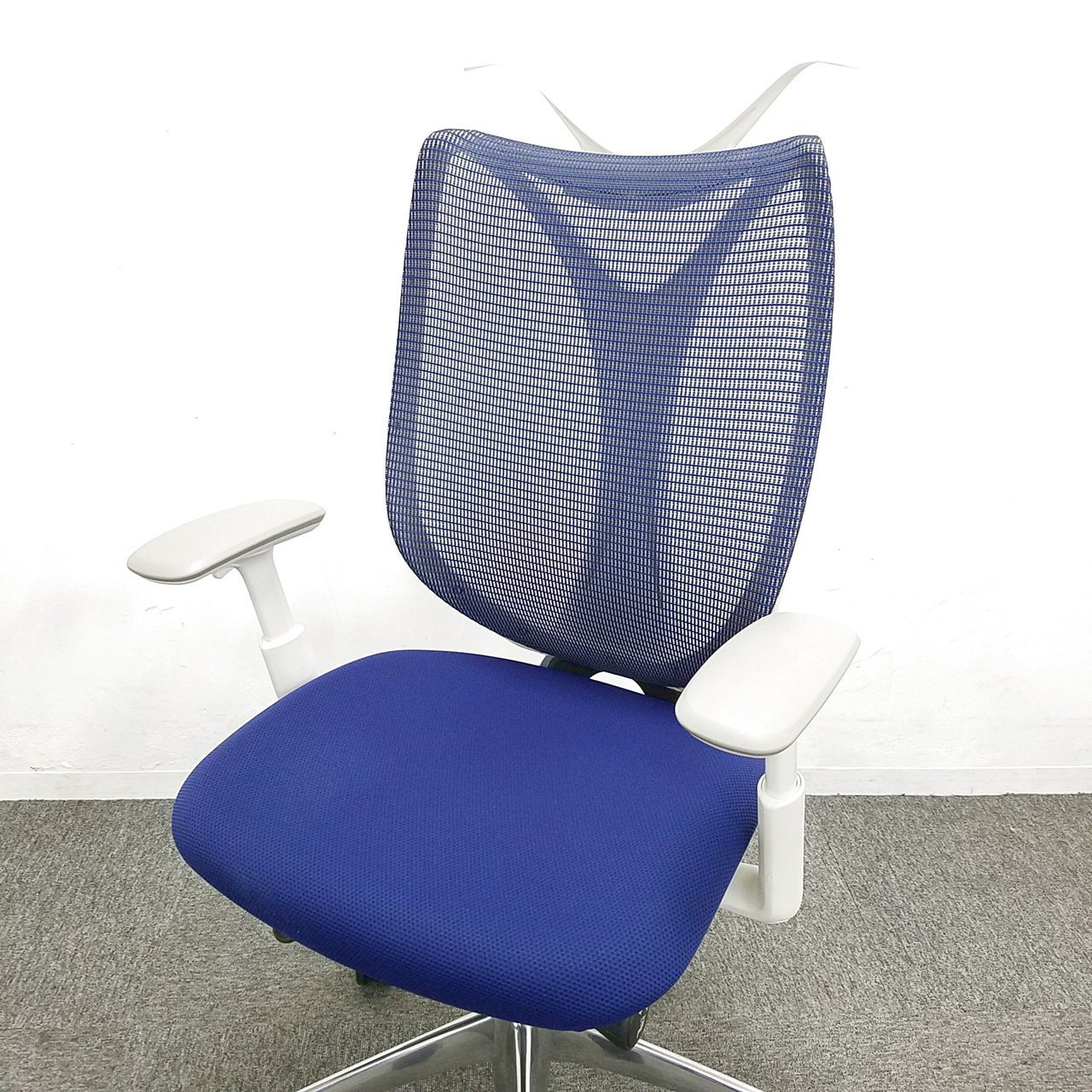 【入荷商品】【4脚入荷】オカムラ製 サブリナチェア ブルー×ホワイトカラー 【可動肘】【背面メッシュ】【通気性抜群】【国内メーカー】