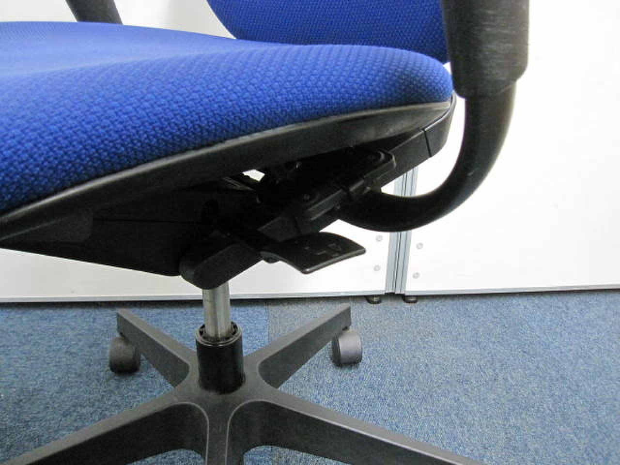 例えば、座面は、イトーキ独自の"ベンディングシート"という機構により、クッション、インターシェル、空洞という三層構造になっています。 この真ん中に挟まっているインナーシェルが、着座時の姿勢に合わせて体重を分散してくれるので、どんな姿勢でも体になじみ、疲労を軽減してくれます。 さらに、座面は前後に4センチほど奥行きを調整でき、前傾姿勢で座りたい、深く腰掛けたい、膝裏を圧迫されたくないなど、個人の好みに合った快適さにカスタマイズが可能となっています。