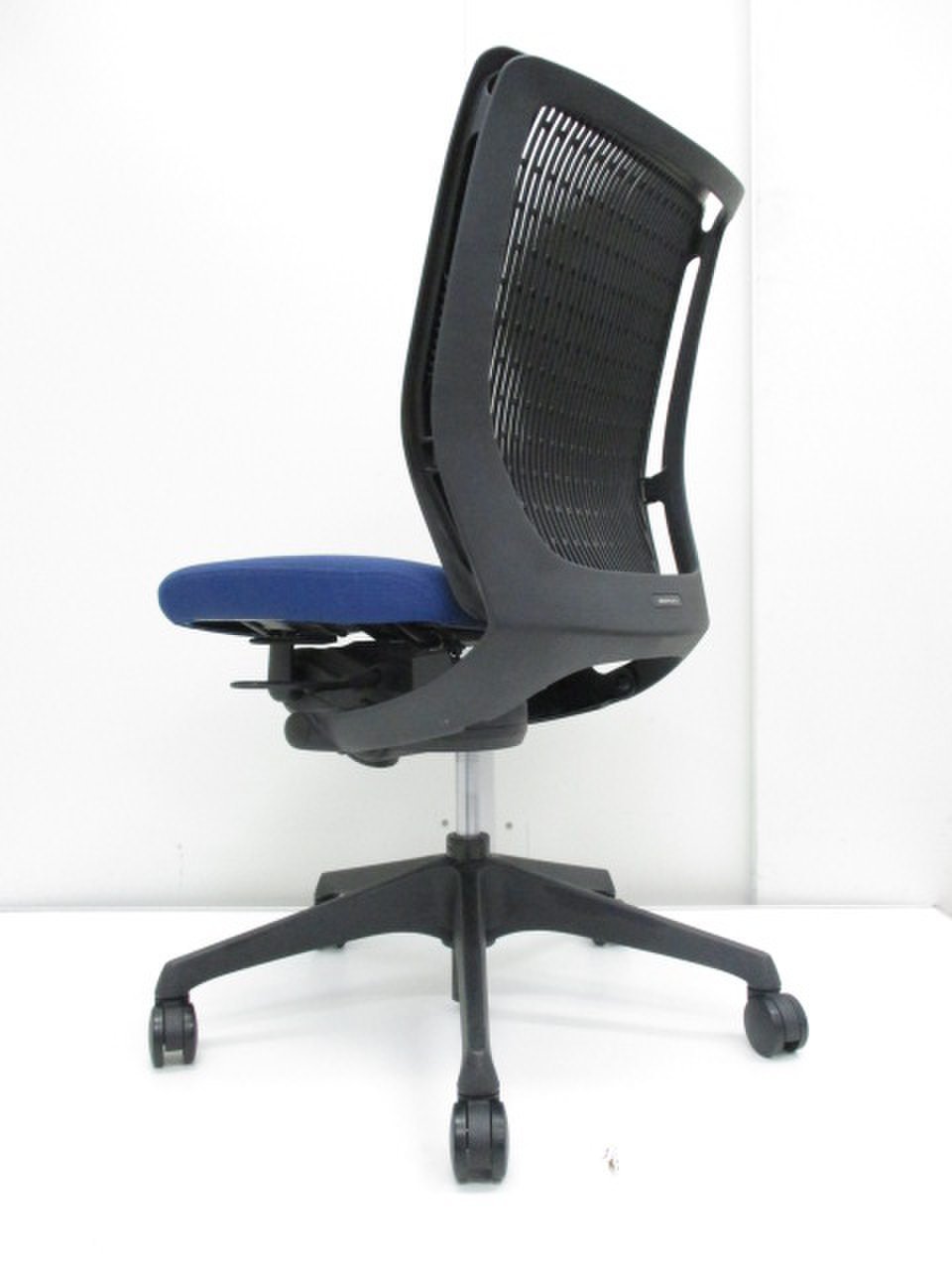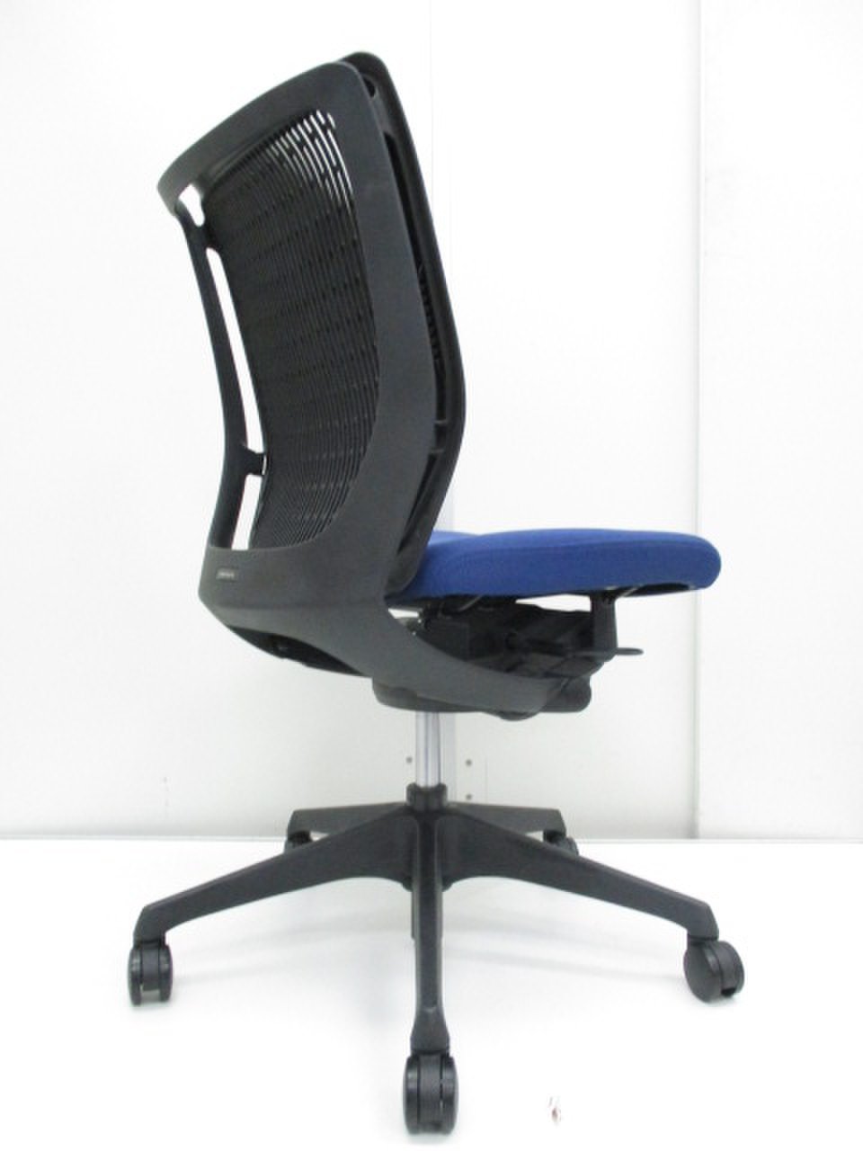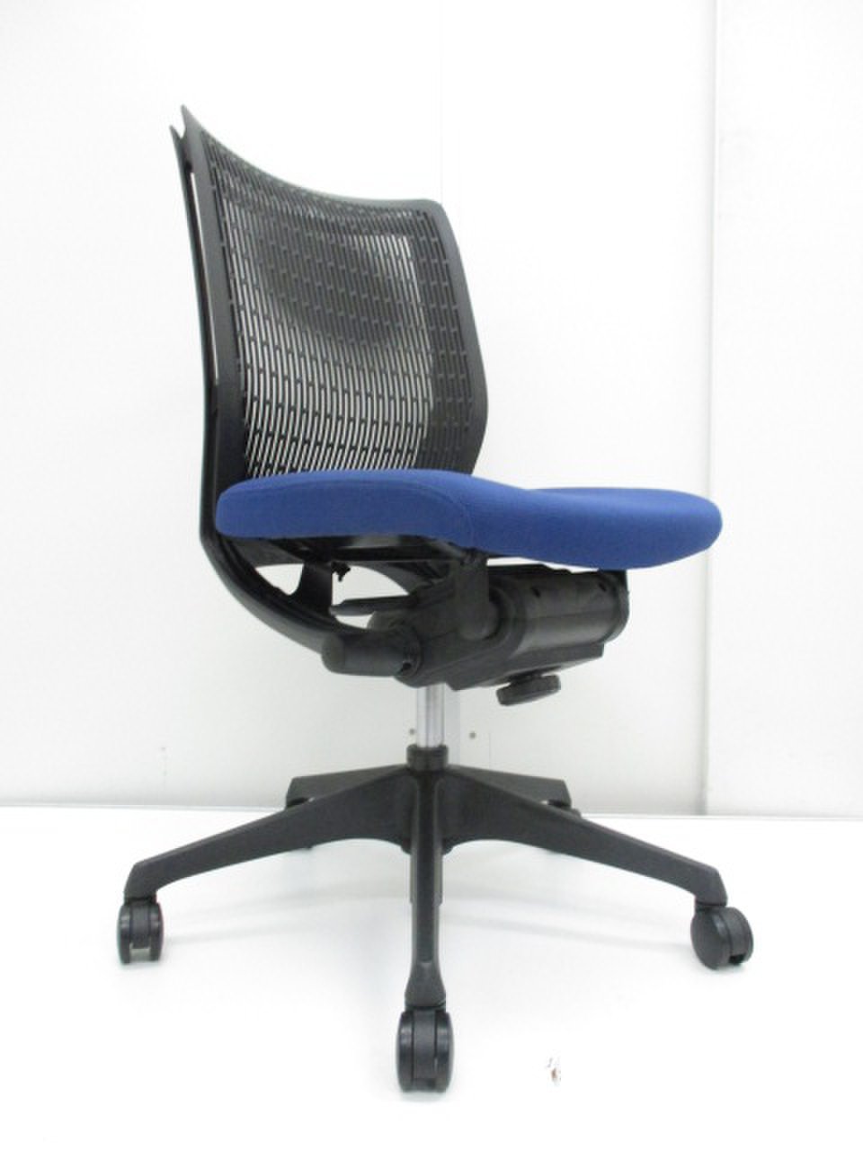 【在庫6点】オカムラ製 ヴィスコンテチェア ブルー×ブラックカラー 肘無しローバック【背面メッシュ】【国内メーカー】