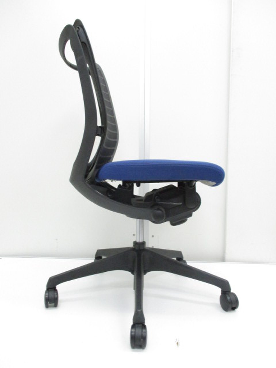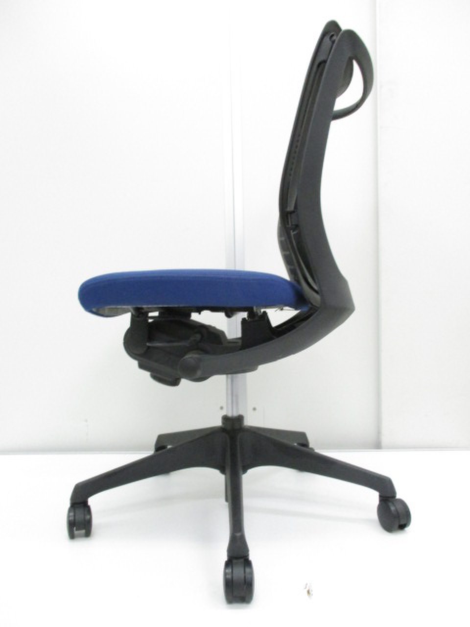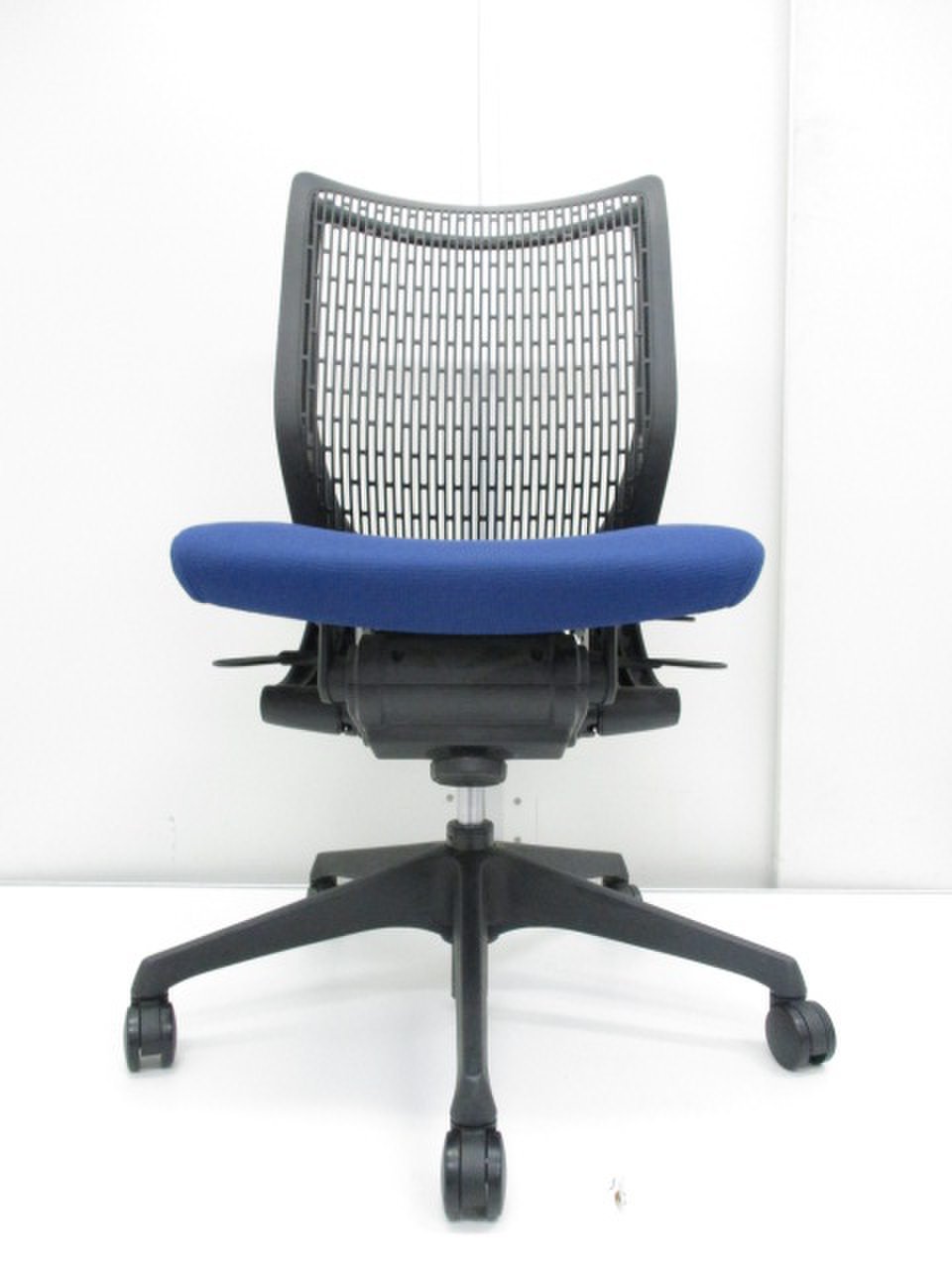 【在庫6点】オカムラ製 ヴィスコンテチェア ブルー×ブラックカラー 肘無しローバック【背面メッシュ】【国内メーカー】
