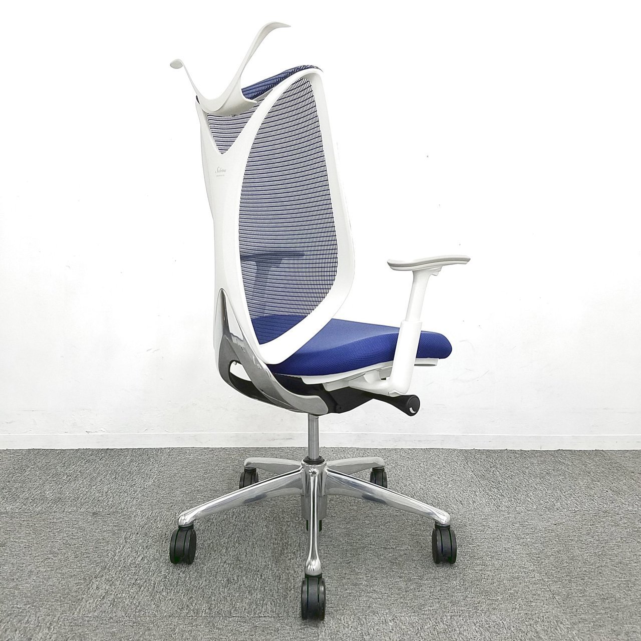 【入荷商品】【4脚入荷】オカムラ製 サブリナチェア ブルー×ホワイトカラー 【可動肘】【背面メッシュ】【通気性抜群】【国内メーカー】