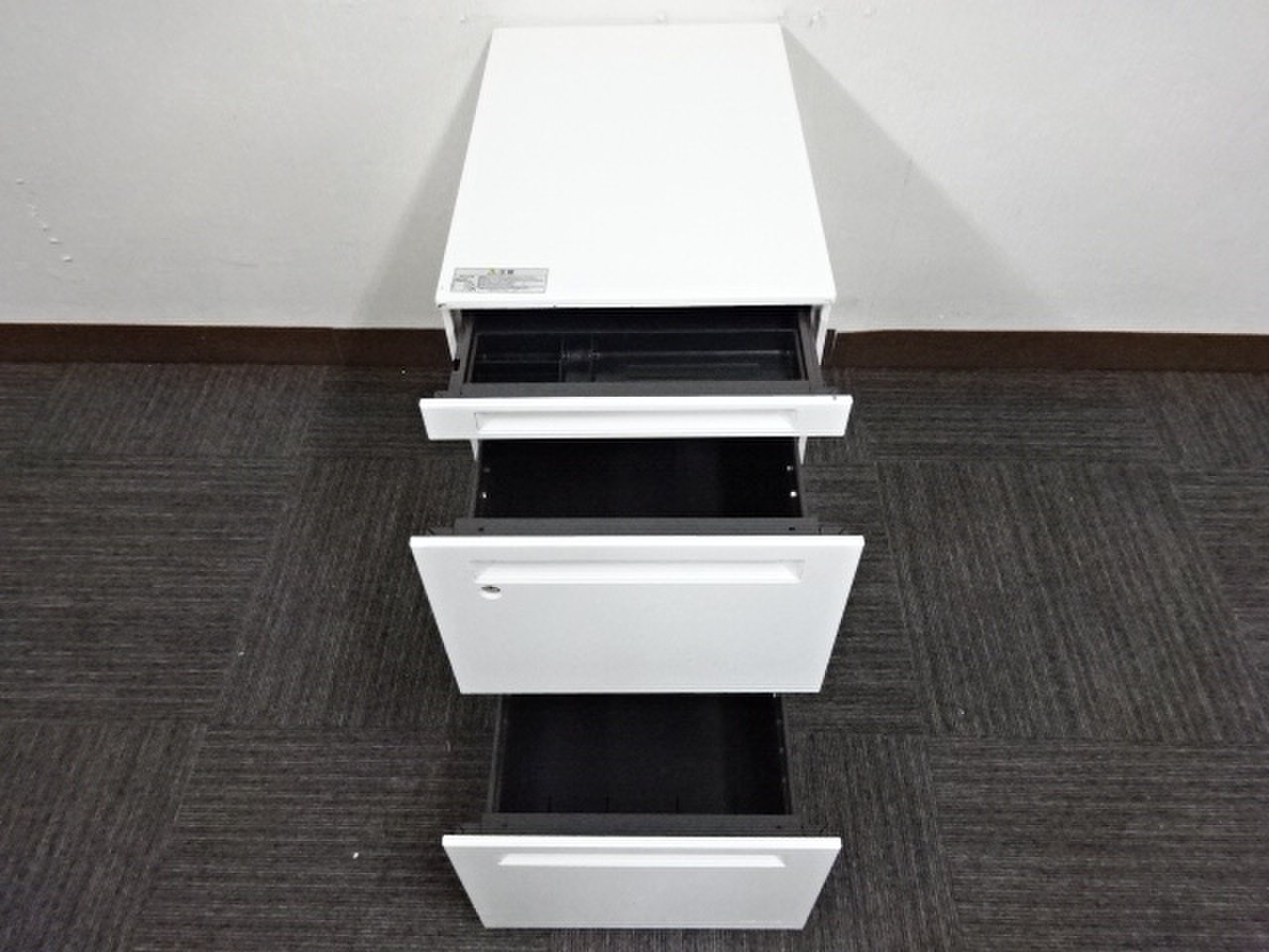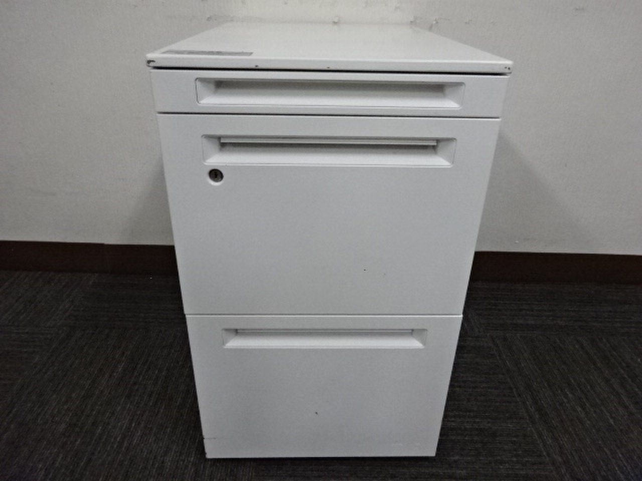 【3段ワゴン】【プロユニット】【オカムラ】【ホワイト】【フリーアドレスデスク用】【高さ650】【鍵確認】- 福岡南店