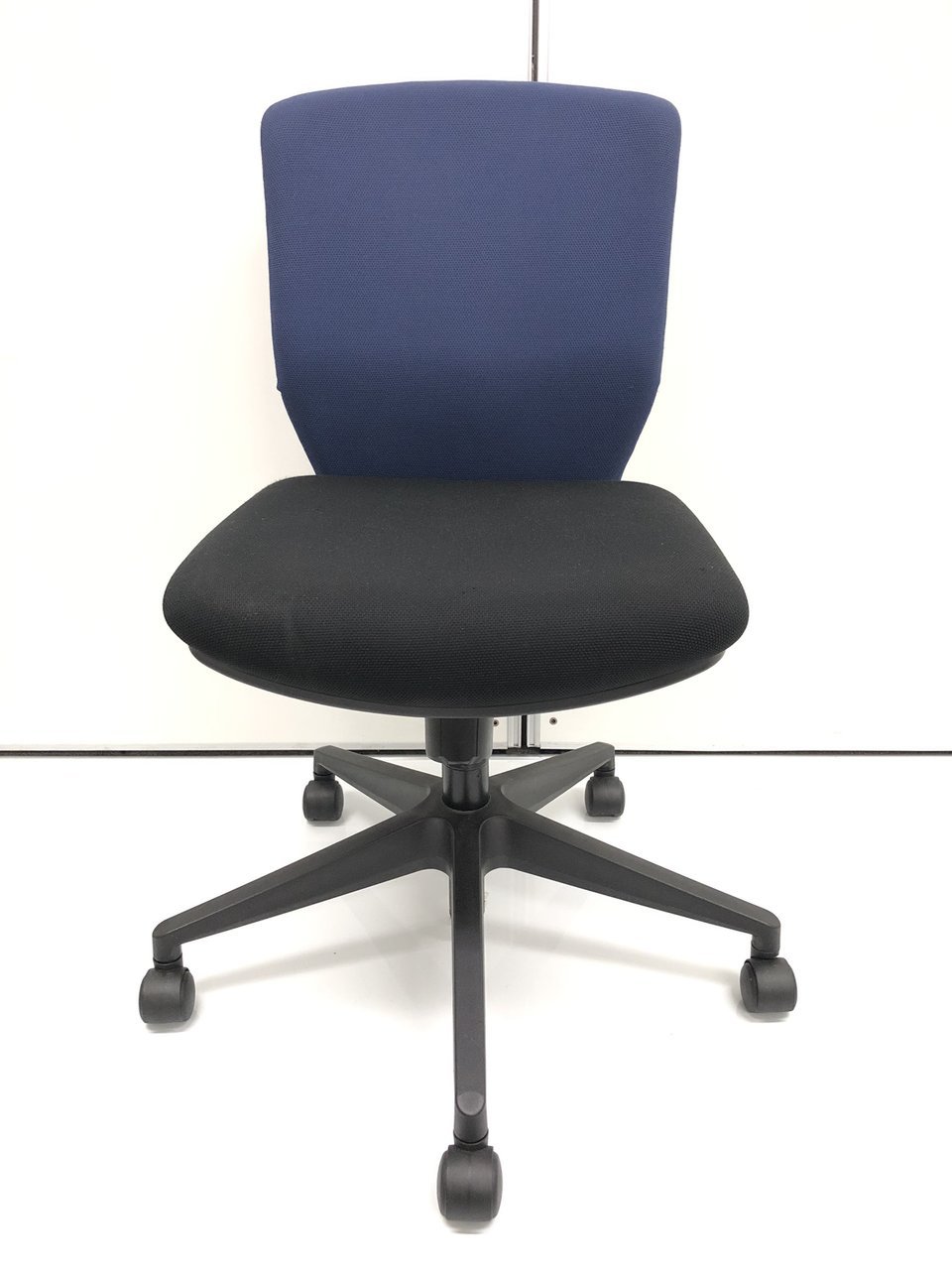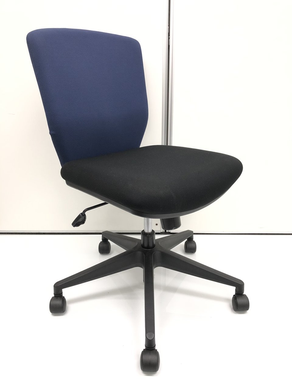 ローバック肘無しチェア■ローコスト商品■青×黒のツートン■個人宅にもおすすめです