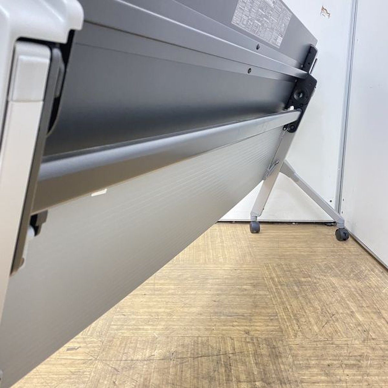 - 一部不具合あり天板歪み、アジャスター無し、キャスター使用不可ようなそのテーブルの本来の効用を果たすための機能以外の一部が使用不可な状態。(例、キャスターロッ ク機能使用不可、棚板無し等がある。)