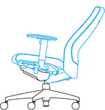 - デスクの高さや体格、作業姿勢に応じて肘当てを好みの位置に、上下左右調節することができます。 肘パッドには、ソフトなウレタンスキンモールドを採用しています。