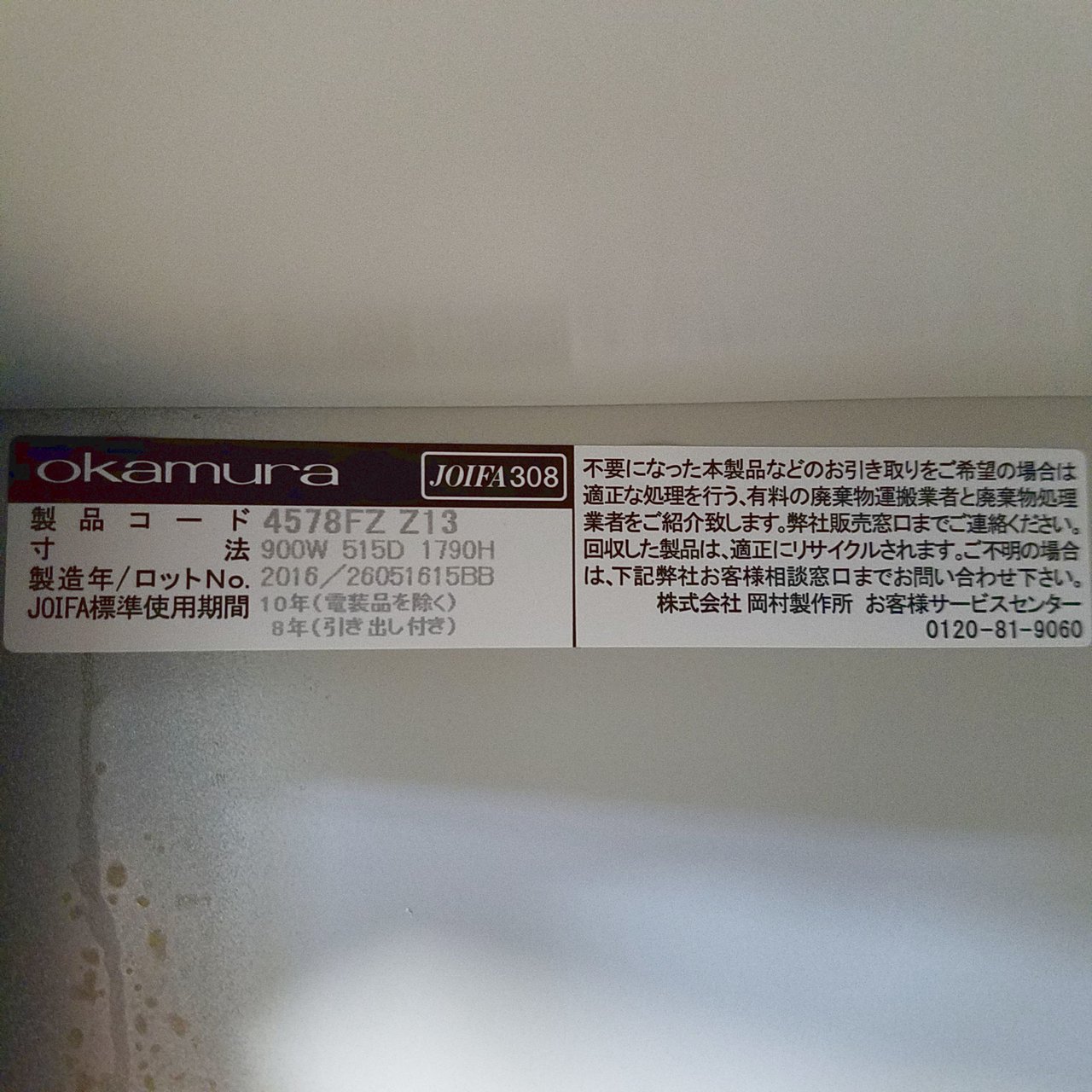 - あり黄ばみ・変色が広い範囲にうっすらある、、広い範囲にある。(例、天板、正面、背部、サイド部分にある。)