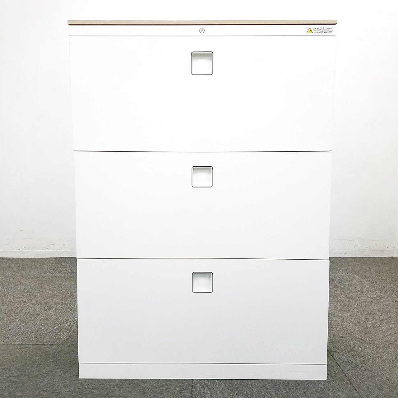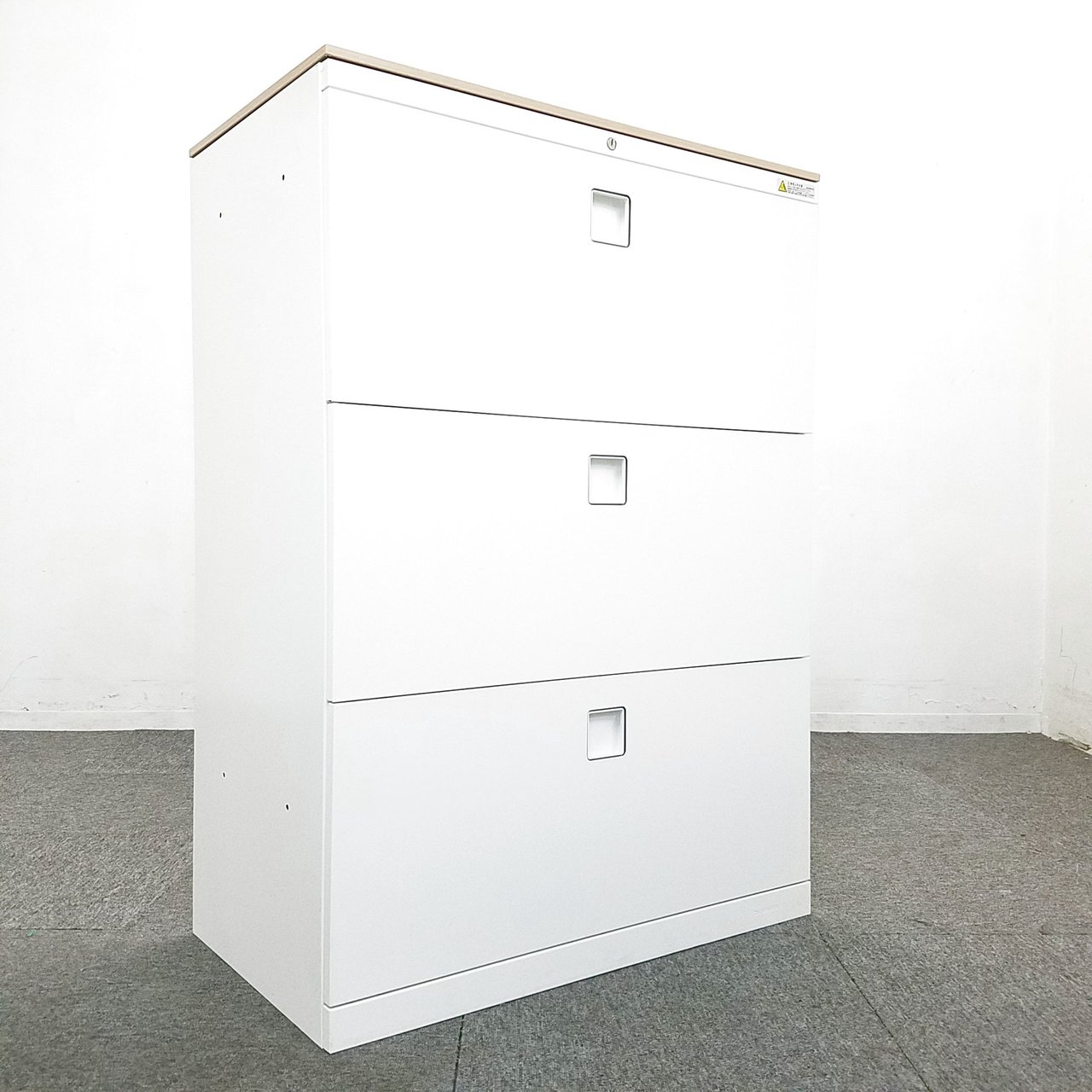 【W800】コンパクトサイズ!【3段ラテラル書庫】オカムラ製 レクトラインシリーズ ホワイトカラー【人気商品】【大容量収納】