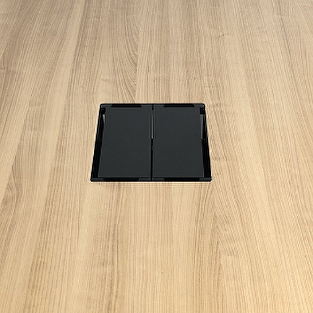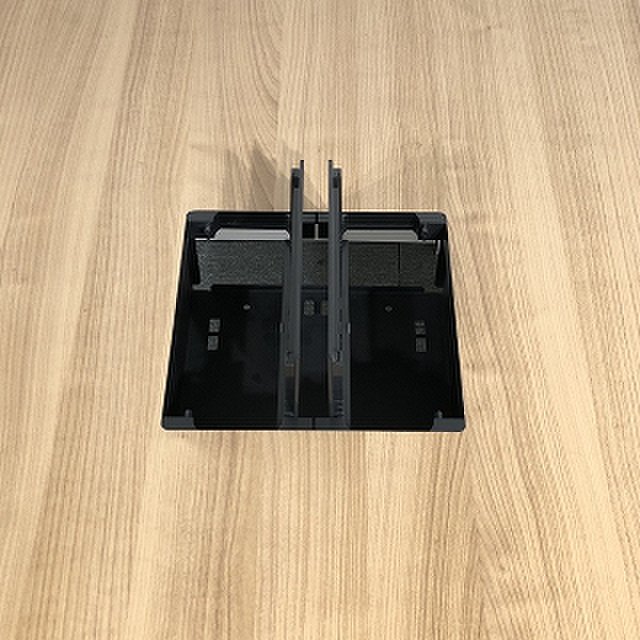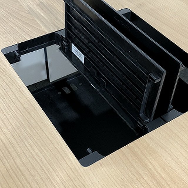 天板の中央にはカバー付きの配線を通す穴が開いております。